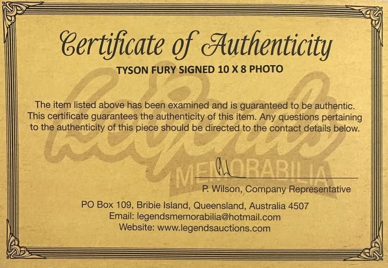 Tyson Fury Personally Signed 10 X 8 Photo. Tyson Fury Is A British Professional Boxer. Fury Holds Multiple World Heavyweight Championships. The Item Is Accompanied By A Certificate Of Authenticity.