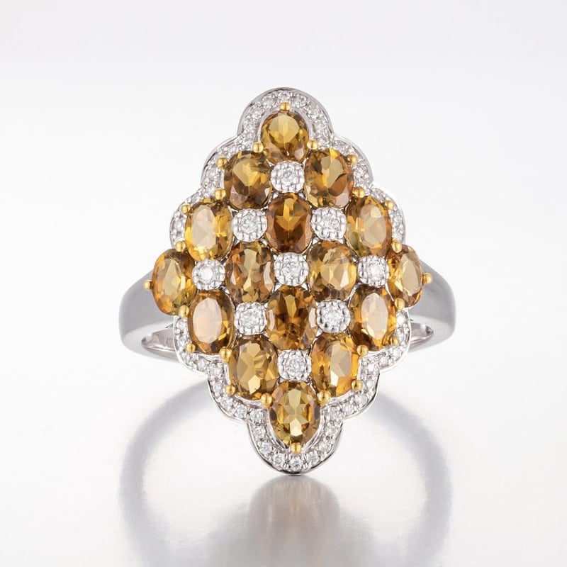 14CT WHITE GOLD TOURMALINE AND DIAMOND CLUSTER RING FEATURING CENTRE, 16 OVAL CUT, DARK DEEP ORANGE TOURMALINES (2.55CT TSW, SLIGHTLY INCLUDED), BEAD SET IN YELLOW GOLD, WITH 59 ROUND BRILLIANT CUT DIAMONDS (0.18CT TDW, G-M COLOUR, VS1-SI1 CLARITY), CLAW SET. RING SIZE O. Valuations Provided by an Independent Third-Party Professional Not Directly Associated With Lloyds Auctions at AUD $19000This valuation has been conducted by an independent third-party professional. The valuation amount is an assessment by the issuing valuer and does not reflect the auction value of the item. Any inquiries regarding the valuation should be directed to the issuing valuer (refer to contact details on the certificate), as Lloyds Auctions has no affiliation or influence over the valuation, the valuer, or the stated amount. Condition: Good - Refer Images 0586216+541