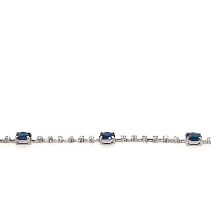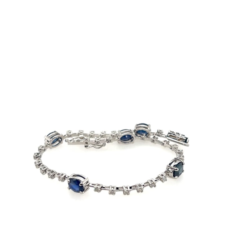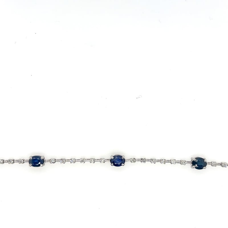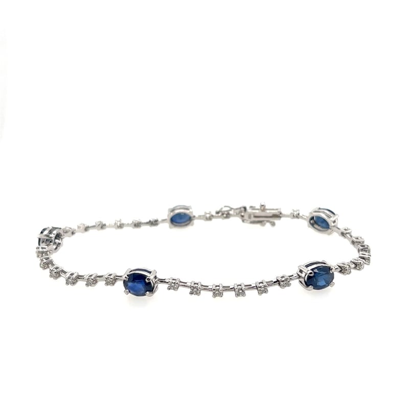 18CT WHITE GOLD SAPPHIRE AND DIAMOND BRACELET.Bracelet Has A Tongue And Groove Clasp, 2 Figure 8 Latches. Featuring 5 Oval Cut Blue Sapphires 4.60Tcw. 31 Brilliant Cut Diamonds 0.70Tcw.Clarity: Si. Colour: FCondition: Good - Refer To ImagesThis valuation has been conducted by an independent third-party professional. The valuation amount is an assessment by the issuing valuer and does not reflect the auction value of the item.Any inquiries regarding the valuation should be directed to the issuing valuer (refer to contact details on the certificate), as Lloyds Auctions has no affiliation or influence over the valuation, the valuer, or the stated amount.Insurance Replacement Valuation Amount: $18,950.00CROSSDOCK162898+20
