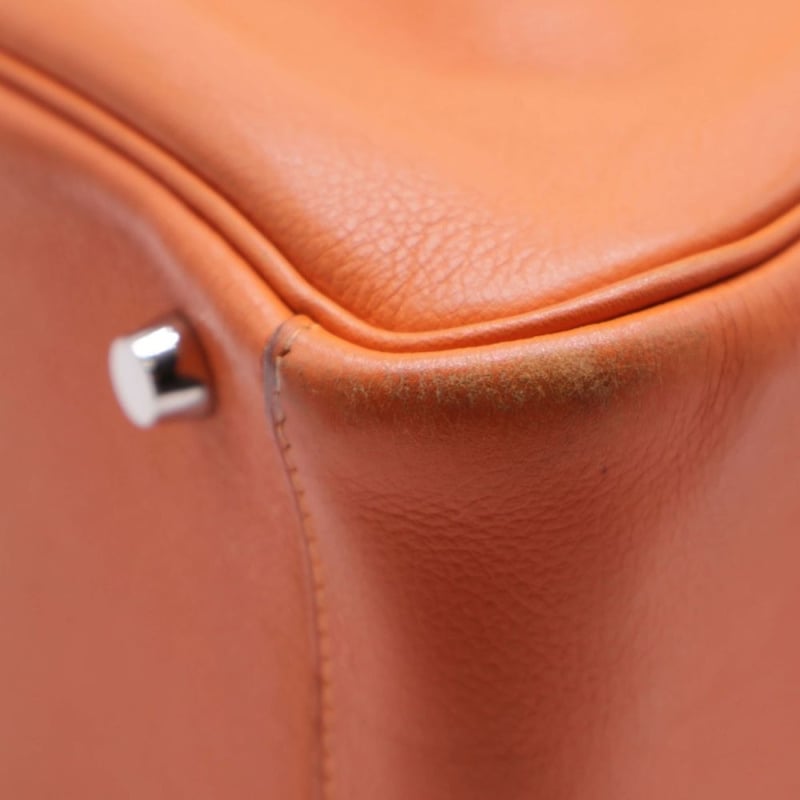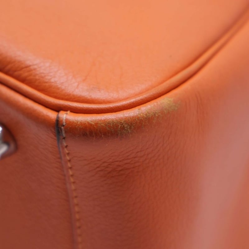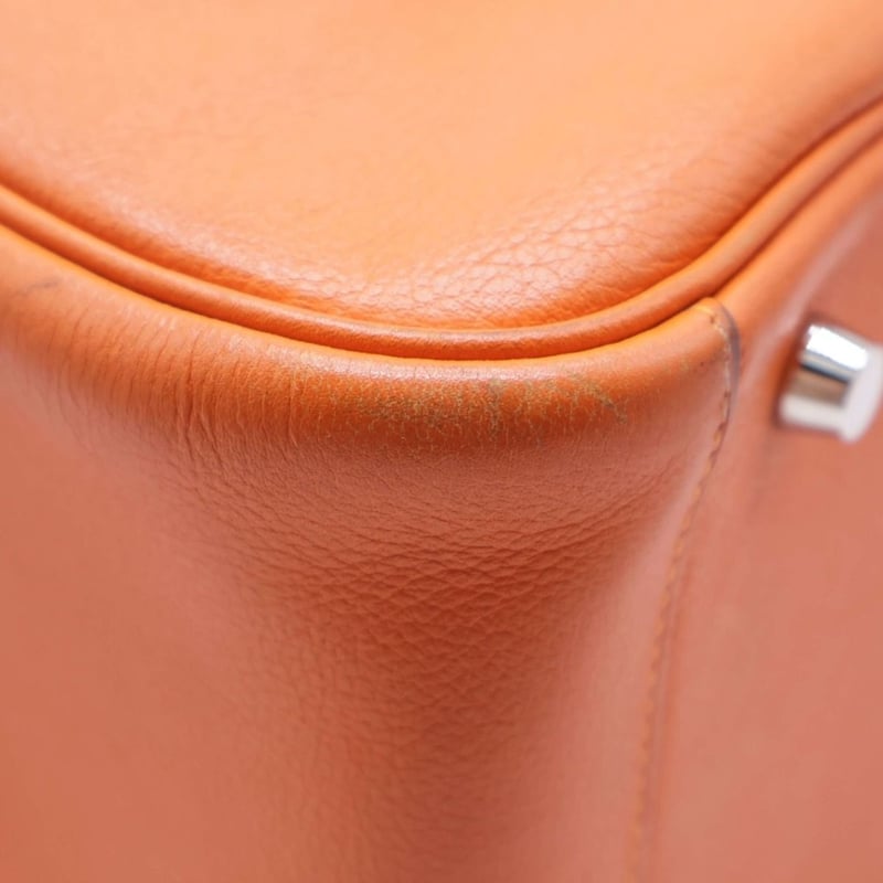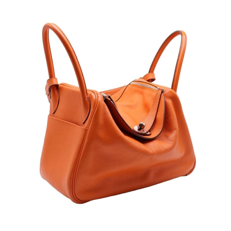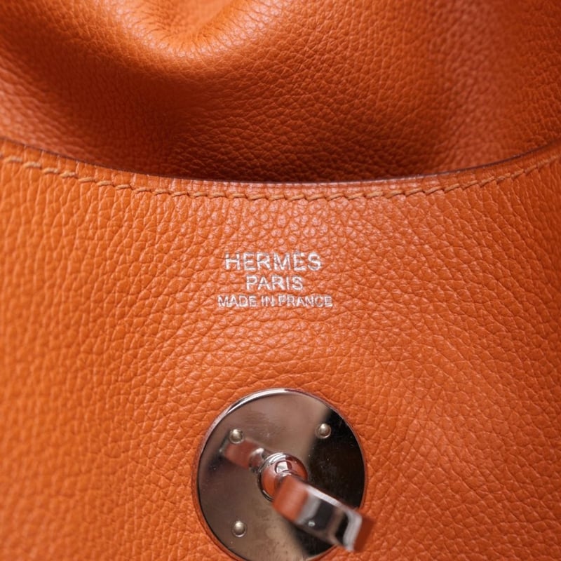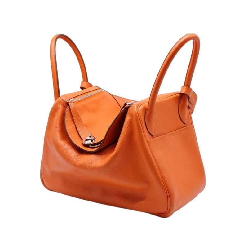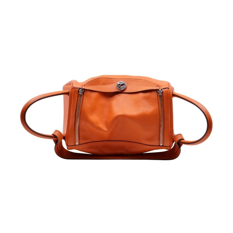 HERMES TAURILLON CLEMENCE LINDY 30 ORANGEItem Size: Height: 22cm, Width: 30cm, Depth: 12cmExterior MaterialLeather With Silver-Tone Hardware, Dual Rolled Top Handles, Dual Slip Pockets At Sides, Protective Metal Feet, Dual Zip Closures At Top With Turn-Lock Closure At Front Flap And A Shoulder Strap.Interior MaterialLeather Lining With A Main Compartment.Additional Condition Report- Minor Sign Of Wear And Tears On Exterior- Moderate Scuffs And Creases On Exterior Corners- Minor Wear And Scratches In Interior- Sign Of Wear And Scratches On HardwareComes With-CROSSDOCK162981+112
