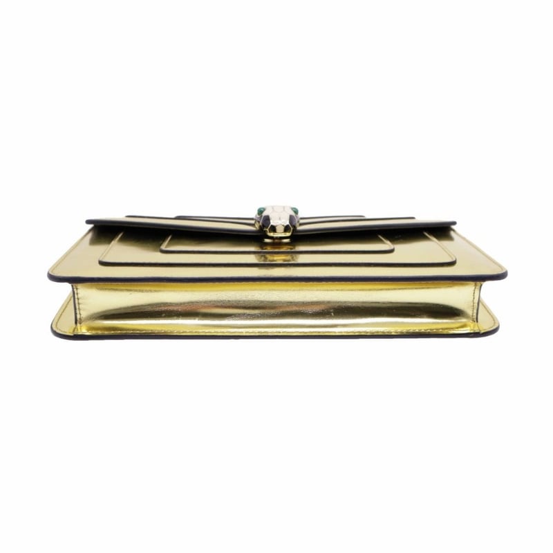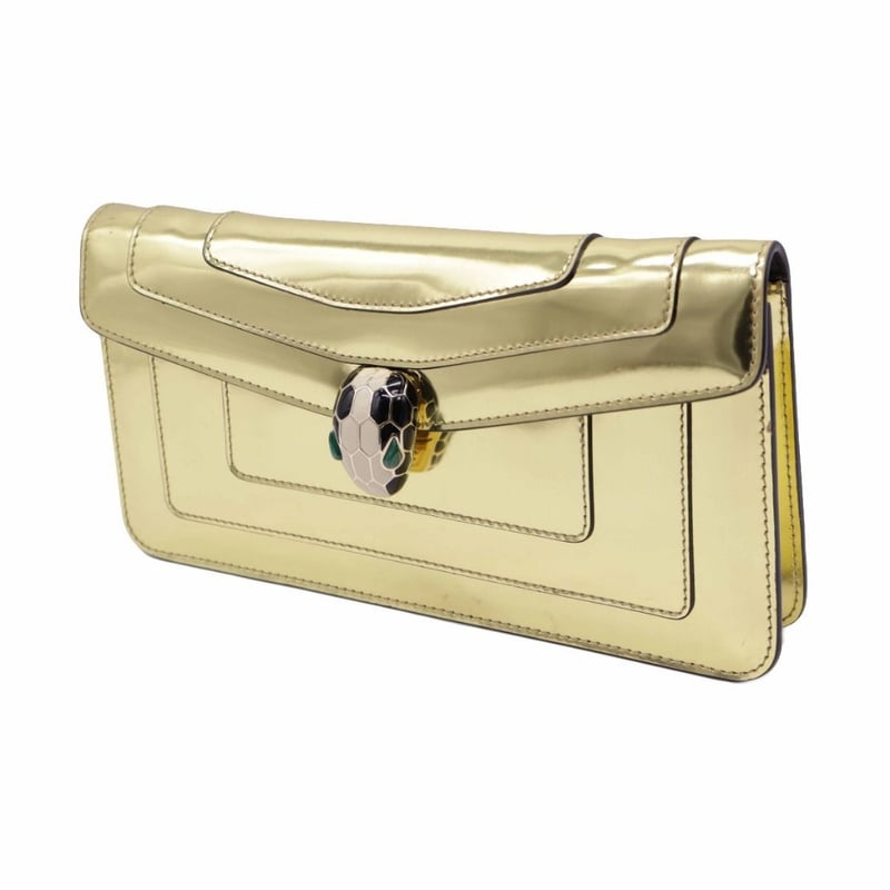 BVLGARI METALLIC GOLD SERPENTI FOREVER SHOULDER BAGItem Size: Height: 13cm, Width: 25cm, Depth: 3.5cmExterior MaterialPatent Leather With Silver-Tone Hardware, Magnetic Snap Button Closure And A Shoulder Strap.Interior MaterialTextile Lining With A Main Compartment And A Slip Pocket.Additional Condition Report- Minor Sign Of Wear, Tears And Scratches On Exterior- Minor Wear In Interior- Sign Of Wear And Scratches On HardwareStrap Drop: 48Cm DetachableComes With- Original Box- Original Dustbag- A Detachable Strap- Certificate Of AuthenticityCROSSDOCK162981+89