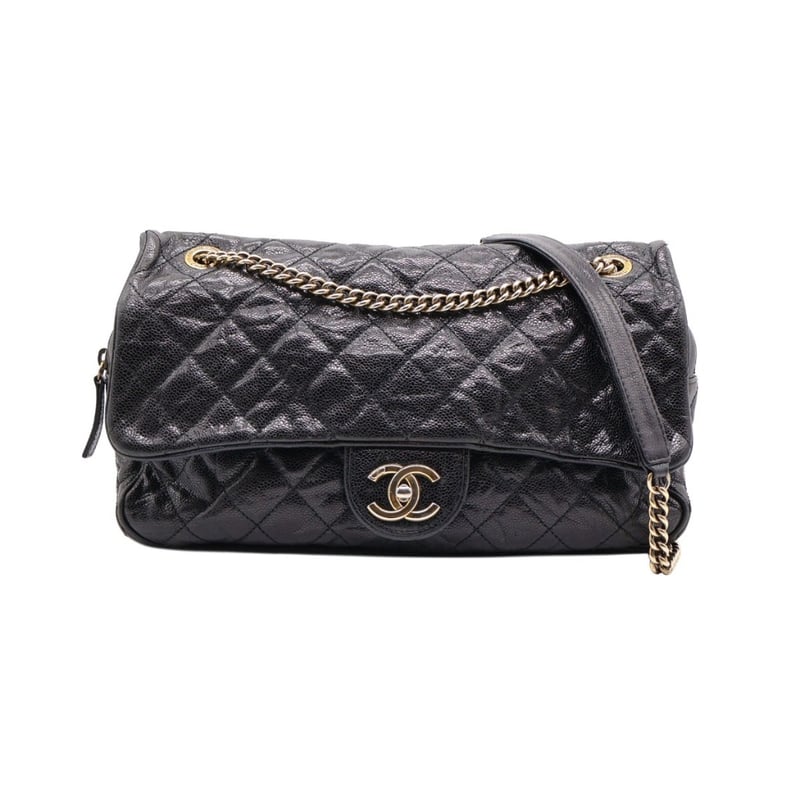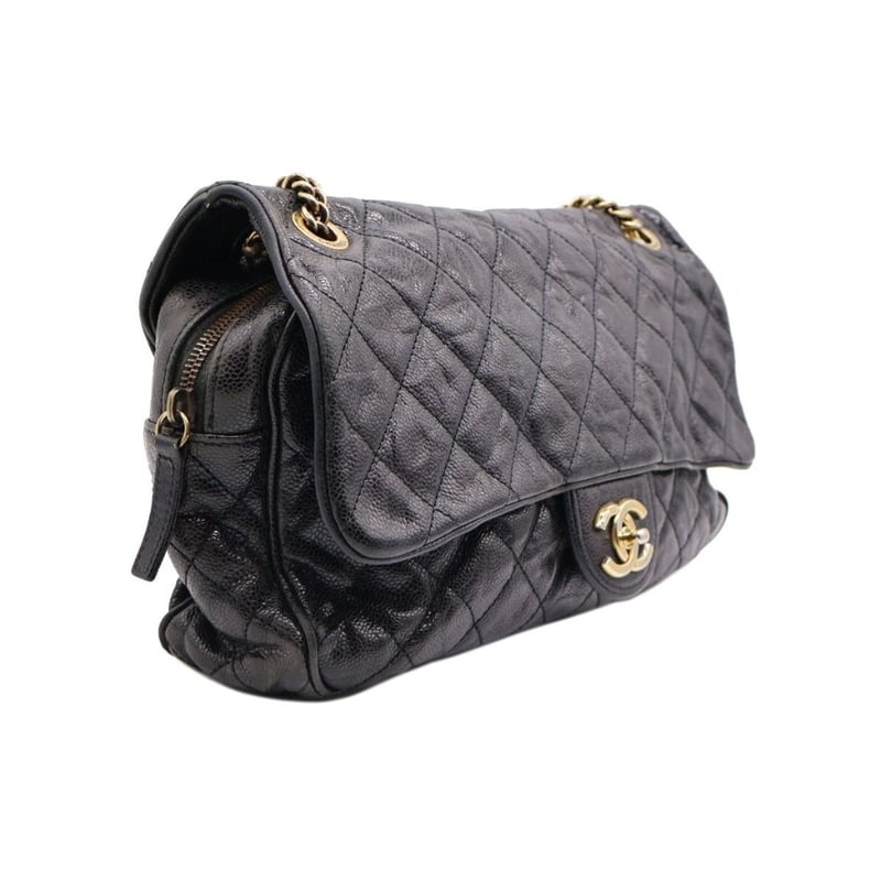 CHANEL BLACK GLAZED CAVIAR LEATHER JUMBO EASY FLAP BAGItem Size: Height: 18cm, Width: 36cm, Depth: 7.5cmExterior MaterialLeather With Gold-Tone Hardware, Cc Turn-Lock Closure And A Shoulder Strap.Interior MaterialTextile Lining With A Main Compartment And A Zipped Pocket.Additional Condition Report- Moderate Sign Of Wear And Tears On Exterior- Visible Scuffs And Creases On Exterior Corners And Along The Edges- Moderate Wear In Interior- Sign Of Wear And Scratches On HardwareStrap Drop: 26/48CmComes With- Original Dustbag- Certificate Of AuthenticityCROSSDOCK162981+108