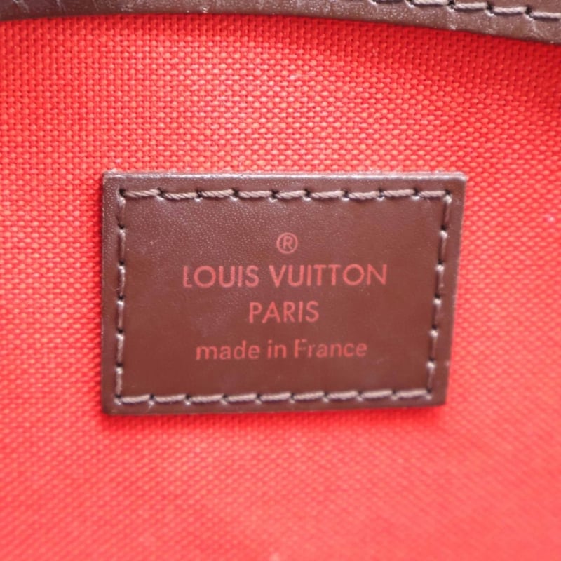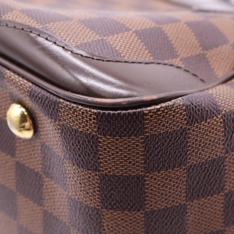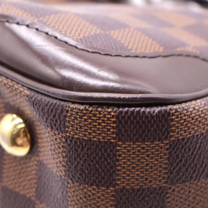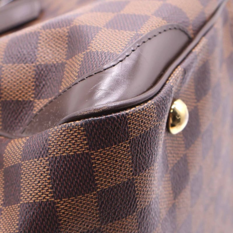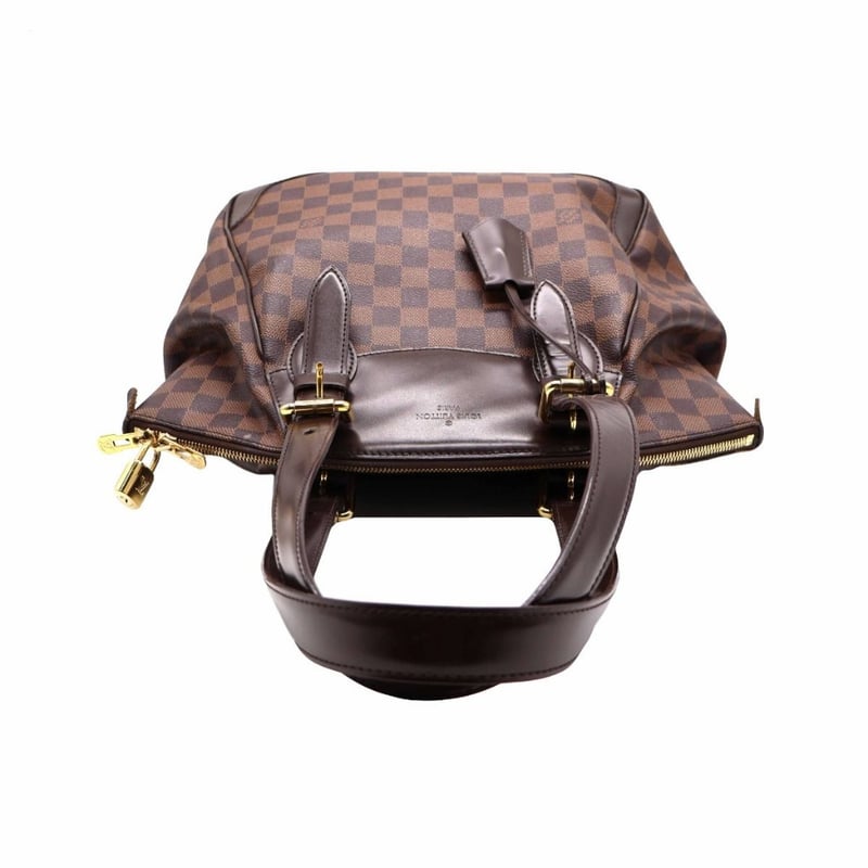 Damier Ebene Canvas And Leather Trim With Gold-Tone Hardware, Dual Flat Curved Top Handles, Protective Metal Feet And Top Zip Closure.