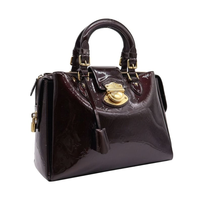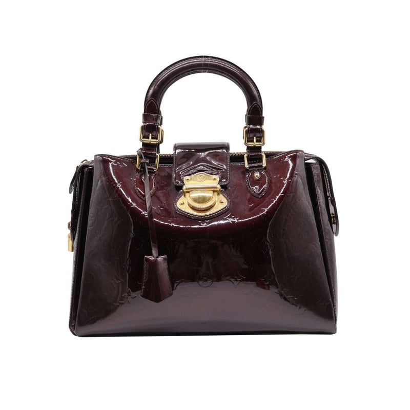 Monogram Vernis Patent Leather With Gold-Tone Hardware, Dual Top Handles, Push-Lock Closure And Protective Metal Feet.