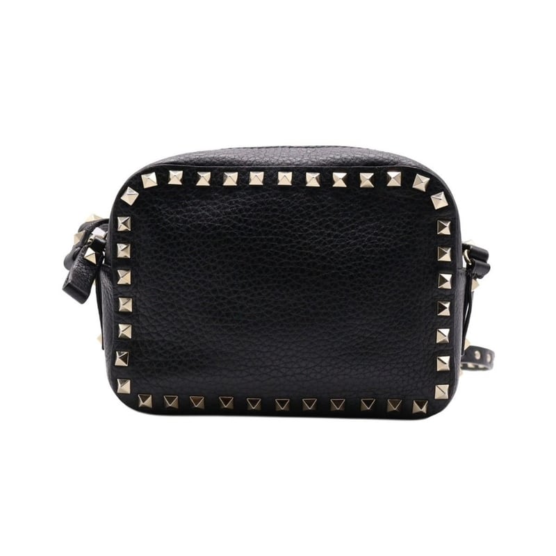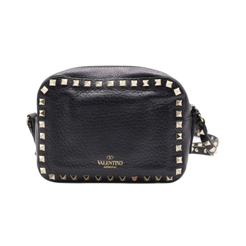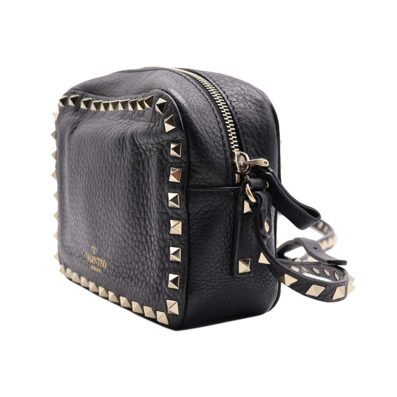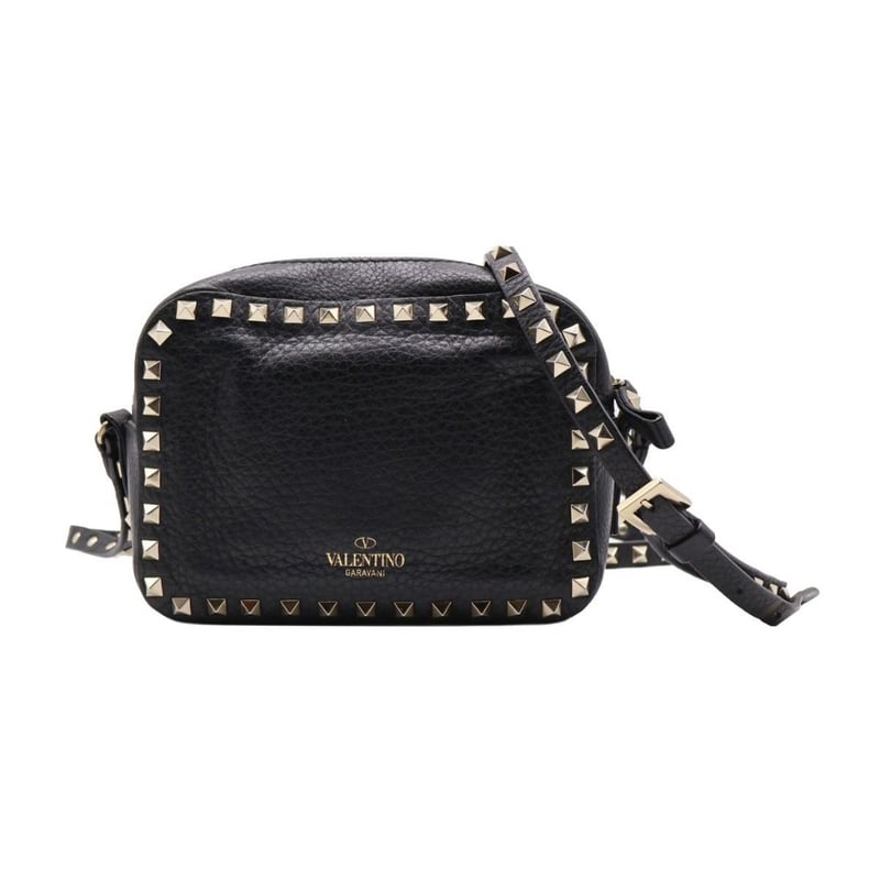 VALENTINO BLACK LEATHER ROCKSTUD CAMERA CROSSBODY BAG
