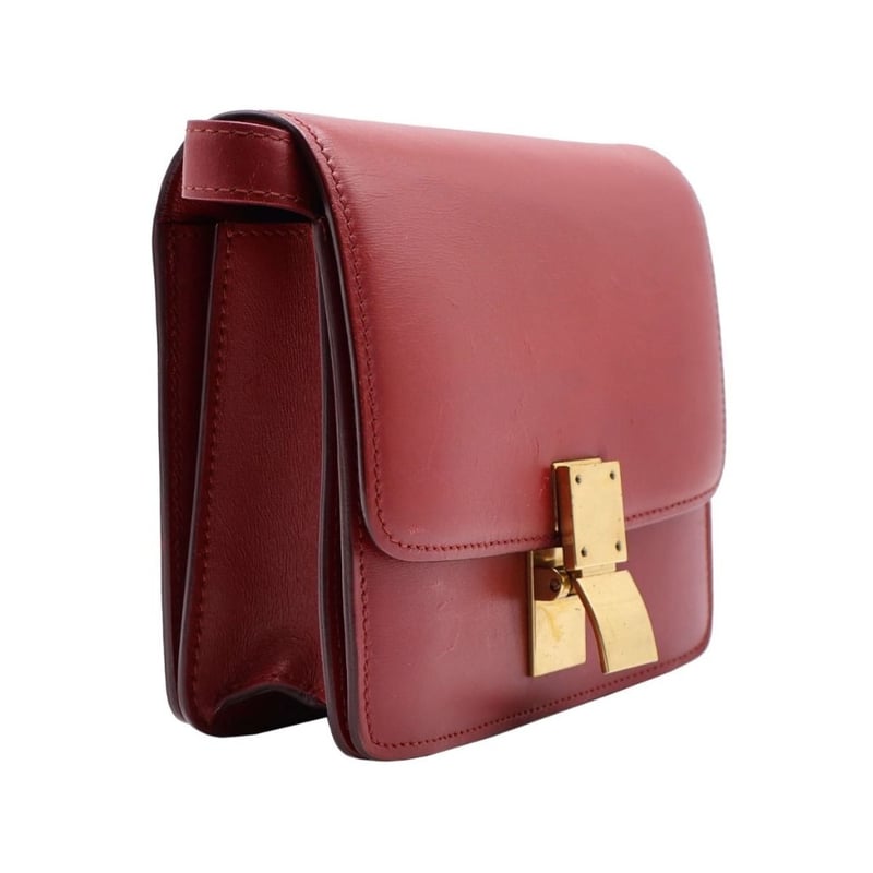 CELINE RED LEATHER SMALL CLASSIC BOX FLAP BAGExterior MaterialLeather With Gold-Tone Hardware, Dual Flat Curved Top Handles And A Shoulder Strap.Interior MaterialLeather Lining With Three Main Compartments And A Zipped Pocket.Additional Condition Report- Moderate Sign Of Wear ,Tears And Scratches On Exterior- Minor Wear In Interior- Sign Of Wear And Scratches On HardwareLength: 16.5CmHeight: 15CmDepth: 5CmStrap Drop: 40CmComes With- Certificate Of AuthenticityCROSSDOCK162981+94