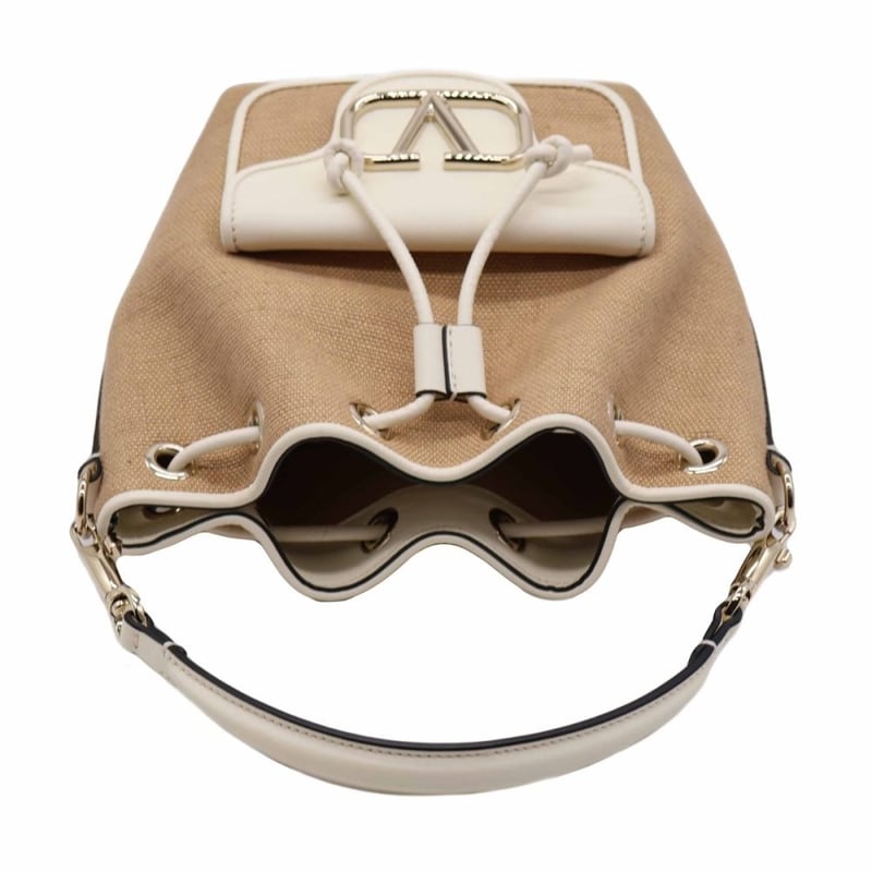 VALENTINO GARAVANI LOCÒ RAFFIA BUCKET BAGItem Size: Height: 19cm, Width: 23cm, Depth: 12cmExterior MaterialRaffia And Leather Trim With Gold-Tone Hardware, Single Top Handle, Drawstring Closure, Front Flap Pocket With Snap Button And A Shoulder Strap.Interior MaterialTextile Lining With A Main Open Compartment, Zipped Pocket And Two Patch Pockets.Additional Condition Report- Minor Sign Of Wear And Tears On Exterior / Interior- Minor Scuffs And Creases On Exterior Corners- Sign Of Wear And Scratches On HardwareComes With- Dustbag- Care Card- Handle And StraCROSSDOCK162981+91