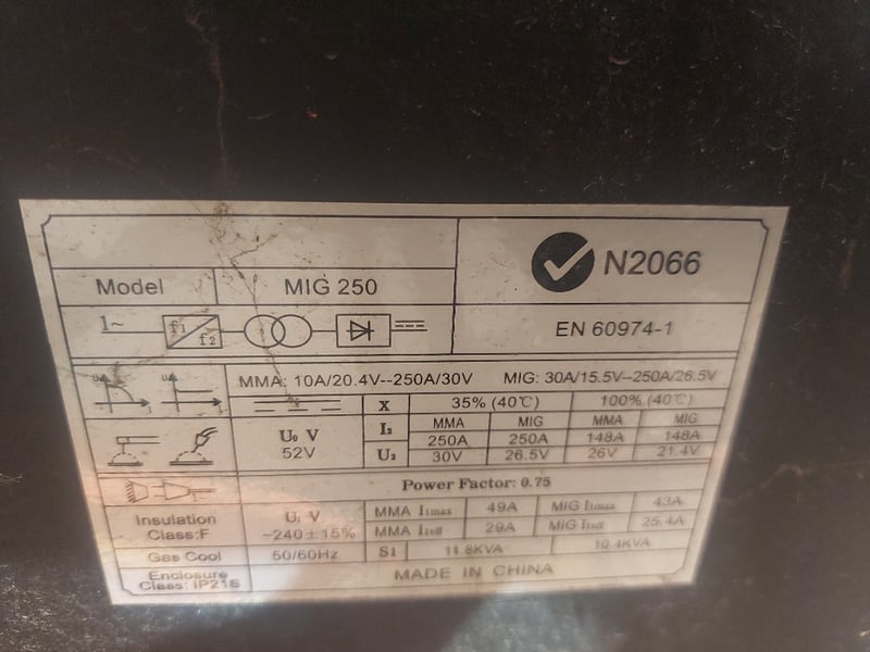 Uni-mig 3 Phase Mig/MMA 250 Inverter Welder, Features Gas Bottle Holder and Built in Trolley