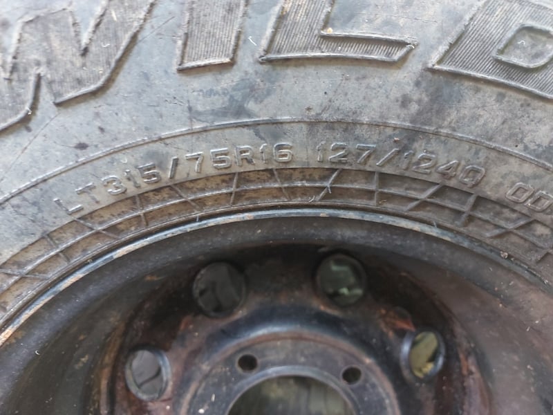 Land Cruiser Rims + Tyres, 5 Stud, 16x8 Steel Pin, Tyres Falken - Wild Peak M/T LT315/75R16, 127/1240,