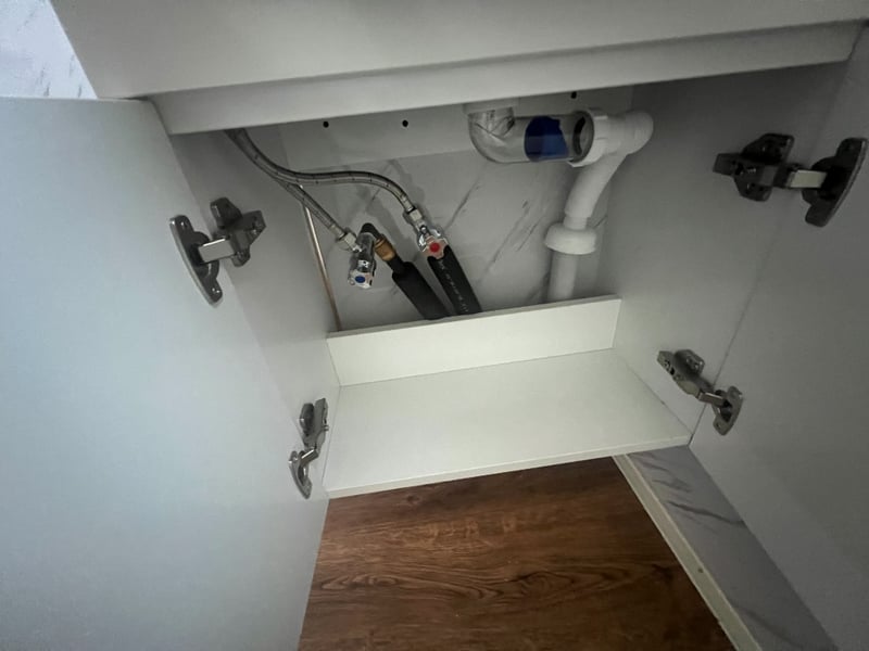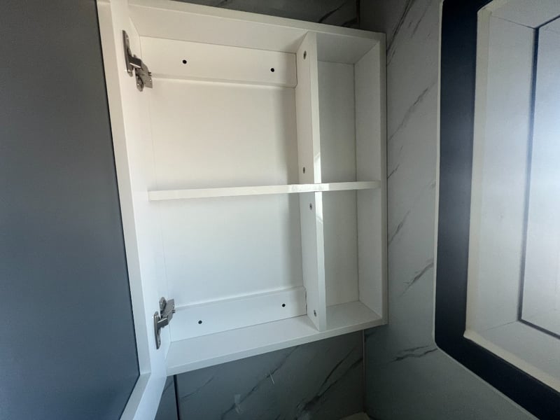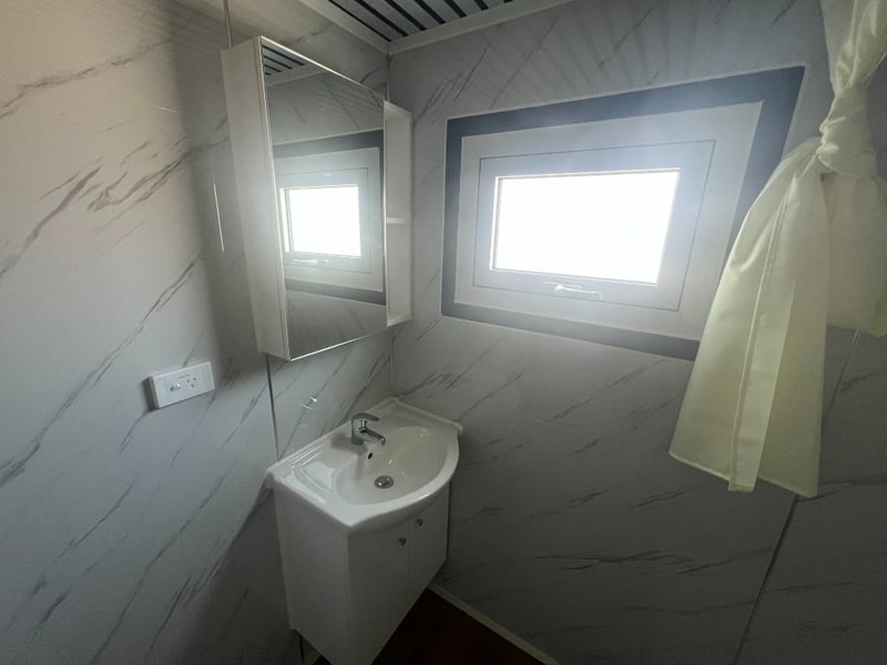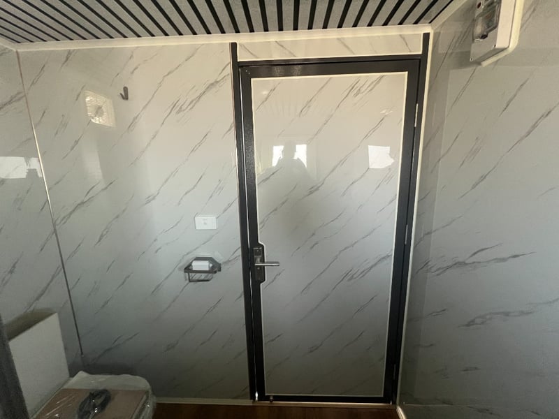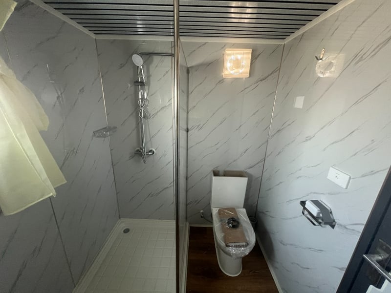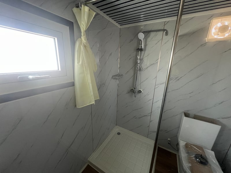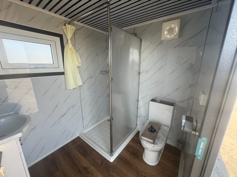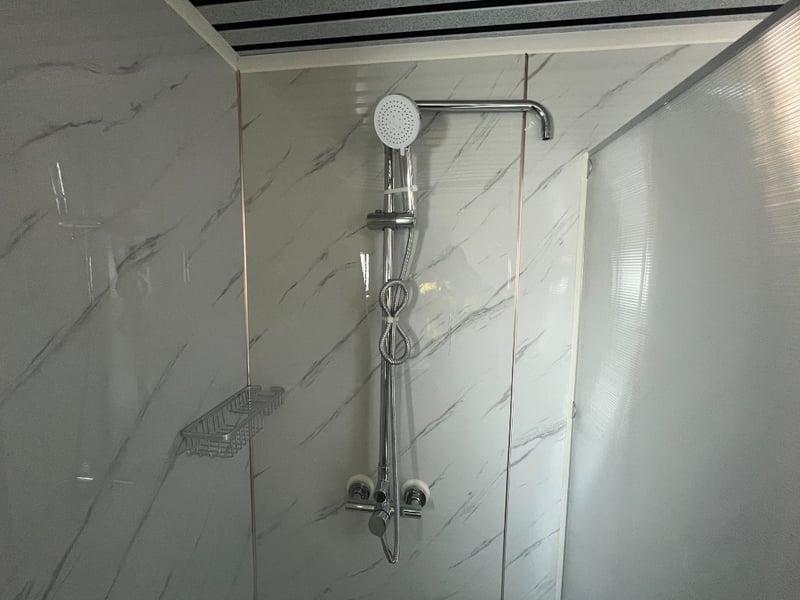 Shower, Toilet, Extractor Fan, Led Lights, Sink with a Vanity, Clothes Hook, Toilet Roll Holder