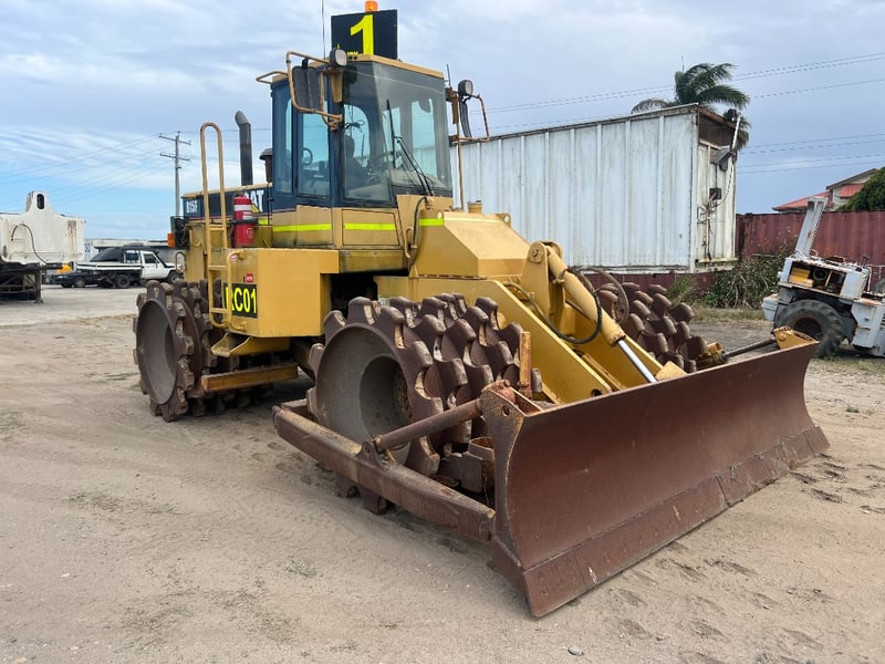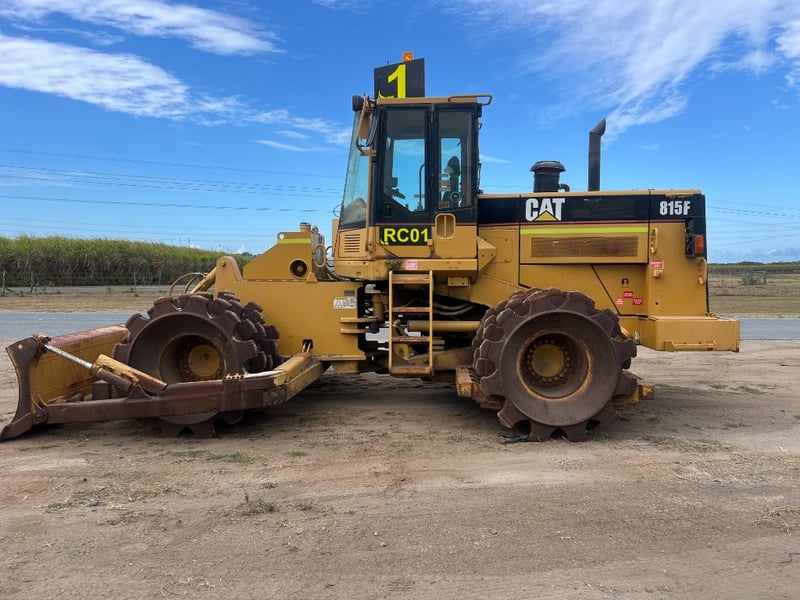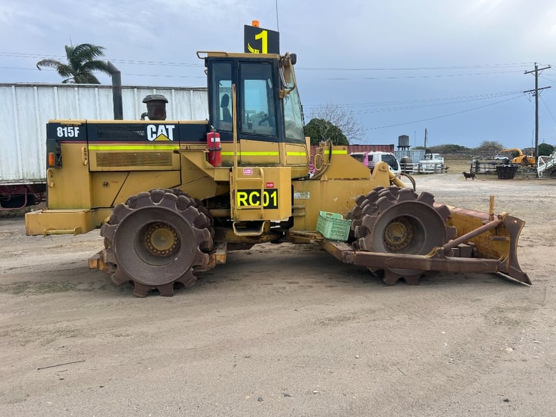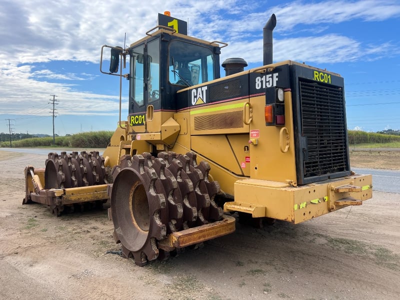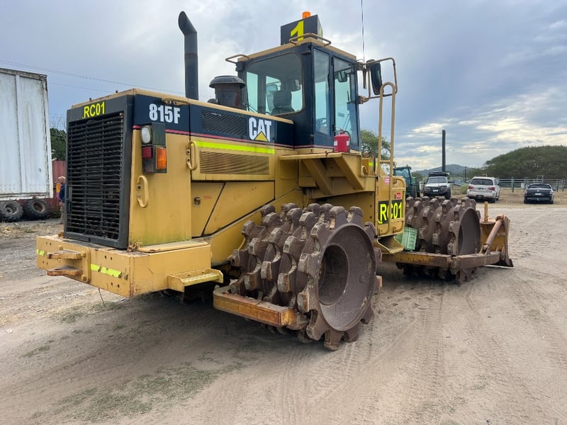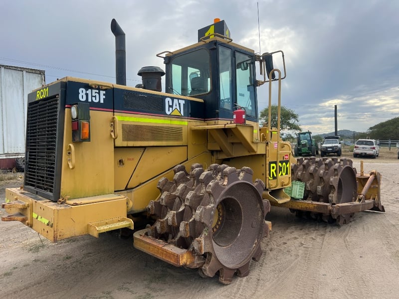 Caterpillar 815F soil compactor—earthwork projects. Those spiked wheels aren’t just for show; they’re designed to knead and compress soil layers to make them denser and more stable, which is essential for building roads, foundations, or agricultural.