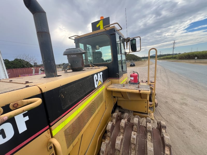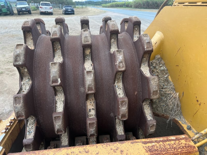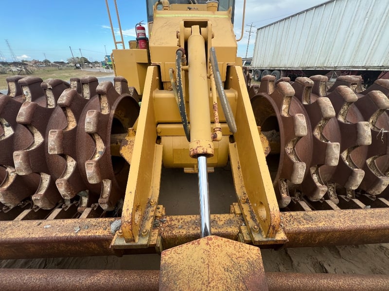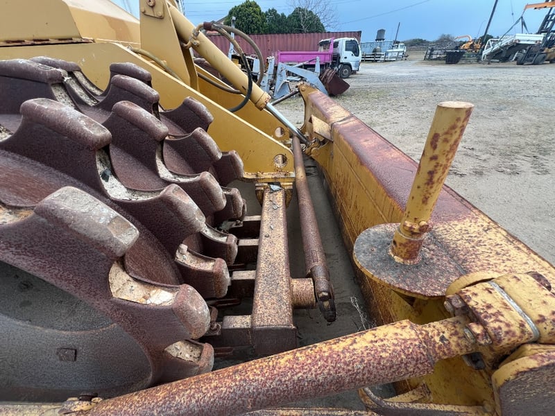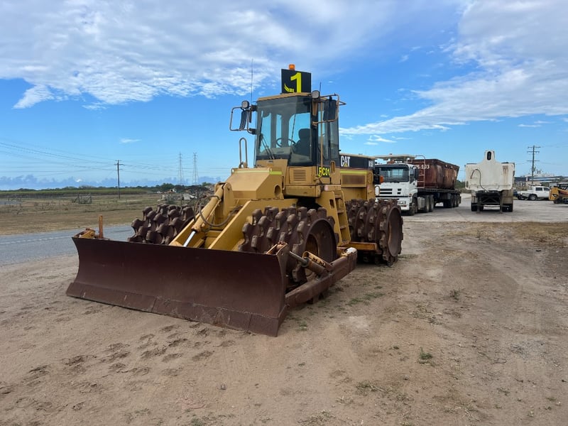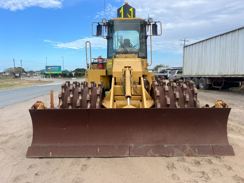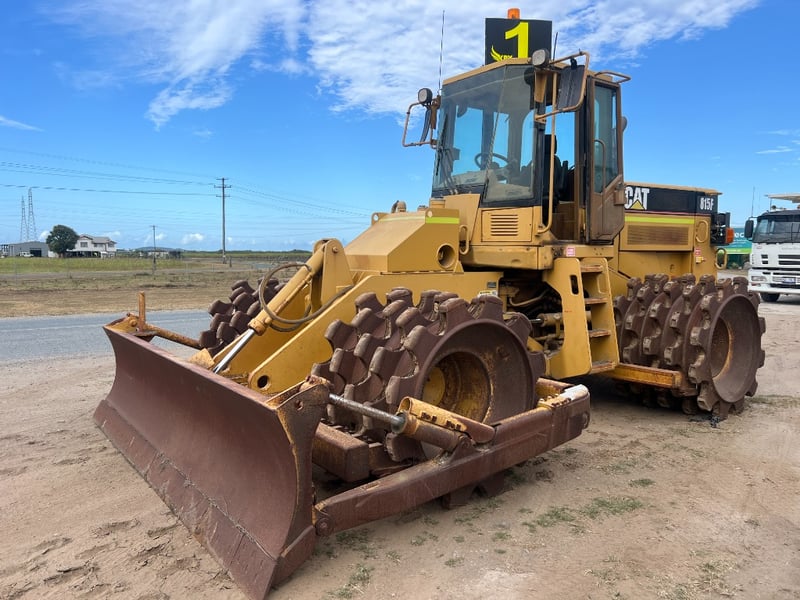 Caterpillar 815F soil compactor—earthwork projects. Those spiked wheels aren’t just for show; they’re designed to knead and compress soil layers to make them denser and more stable, which is essential for building roads, foundations, or agricultural.