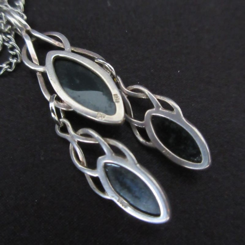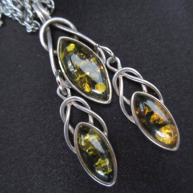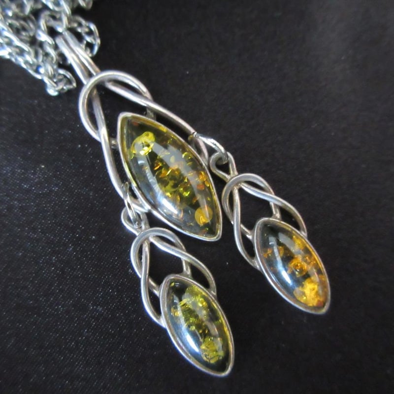 Estate Stunning (3) x Drop Amber Art Nouveau Style Sterling Silver Pendant (Stamped 925 & Maker's Mark) On Long Chain (Boxed)