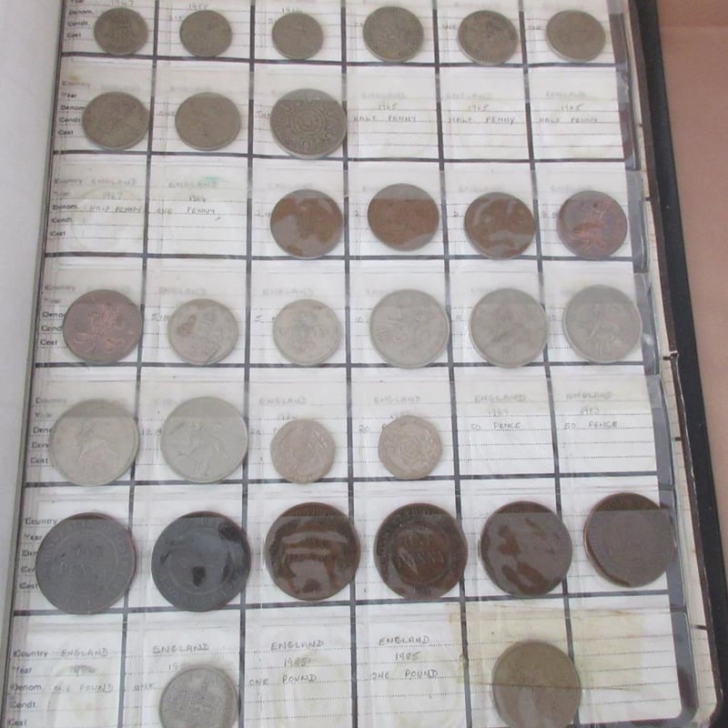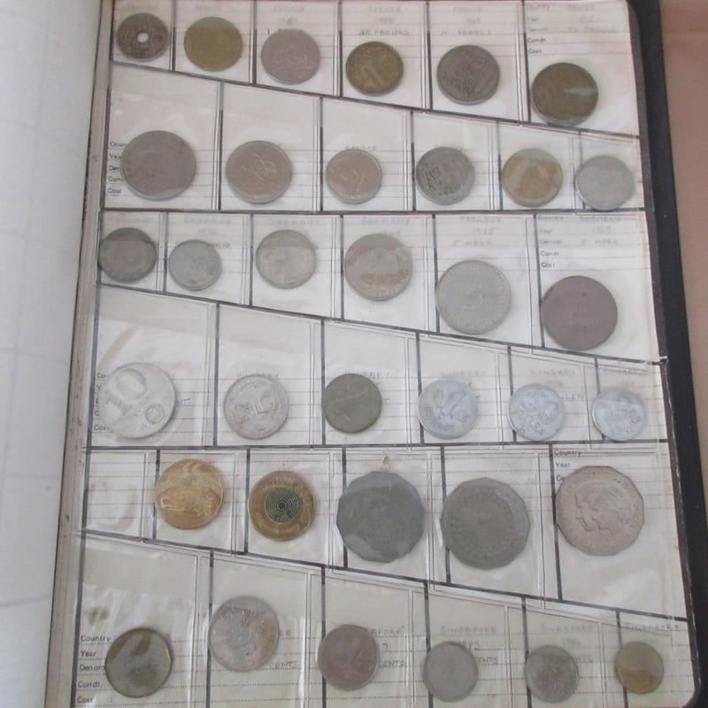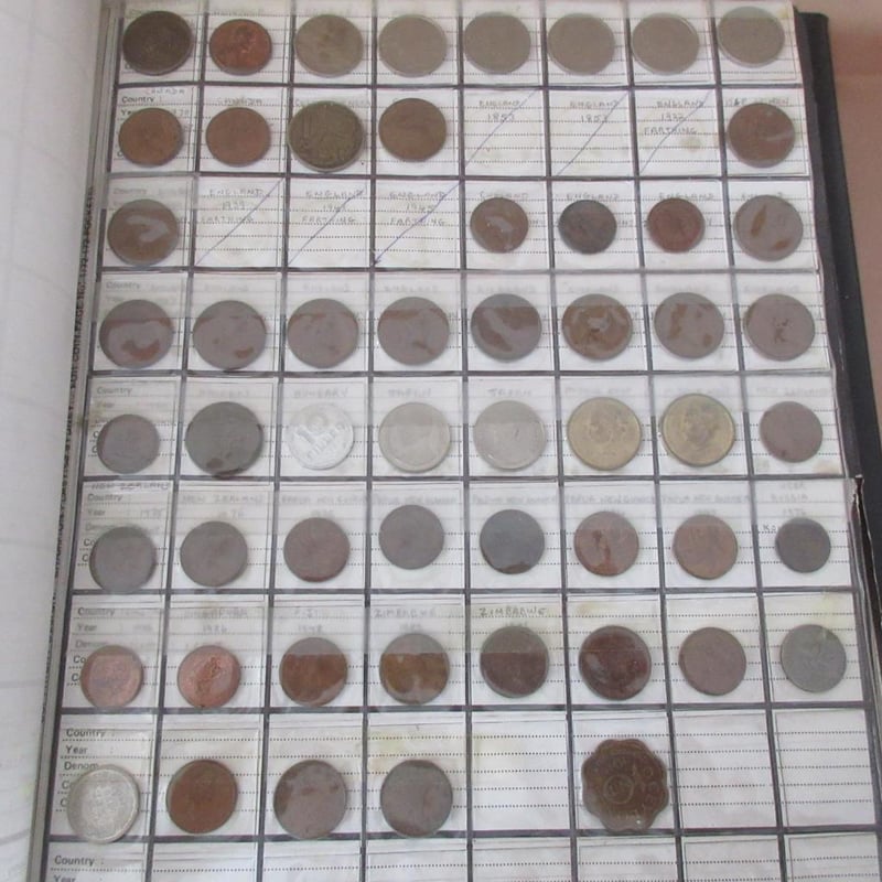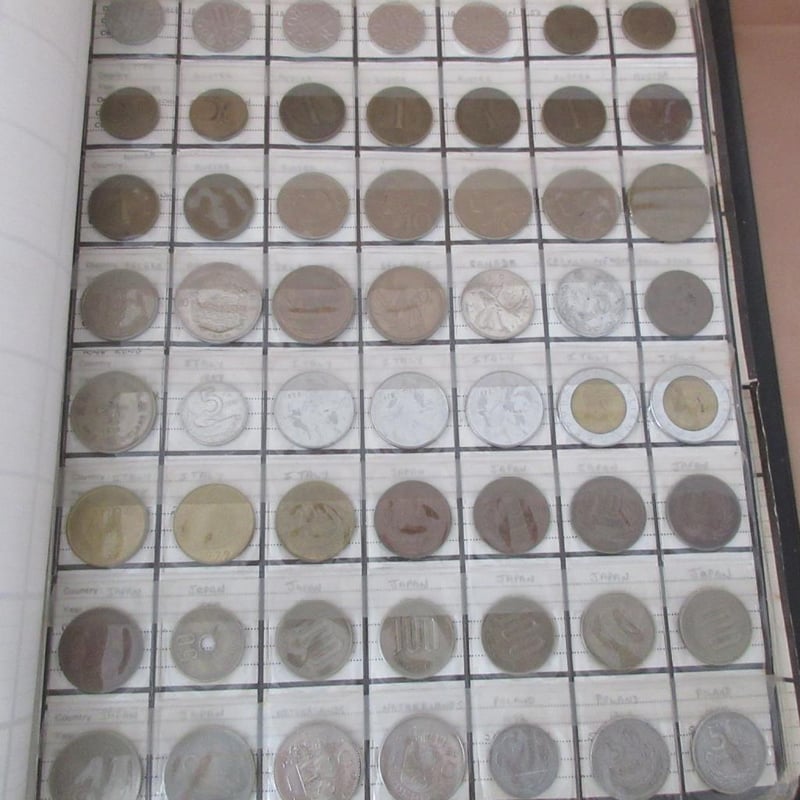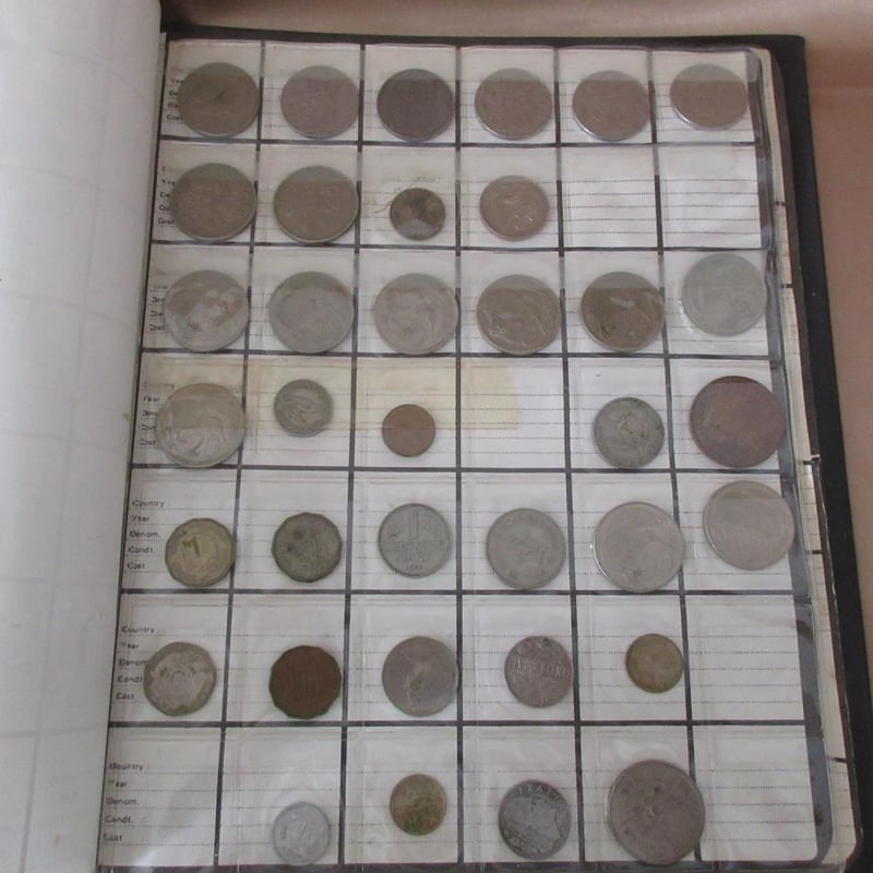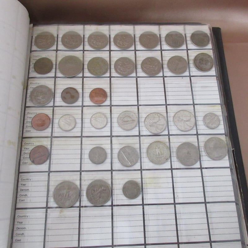 Estate Large Collectors Coin Album (Over 370 Coins) Including Antique & Vintage Coins From Afrikann C1896 + Australian From C1911 + France From C1927 + Germany From C1925 + English + USA + Japan + Russia +++ (Album Size 30cm x 26cm)