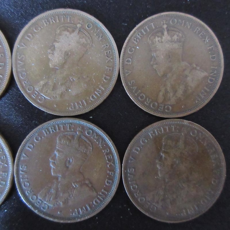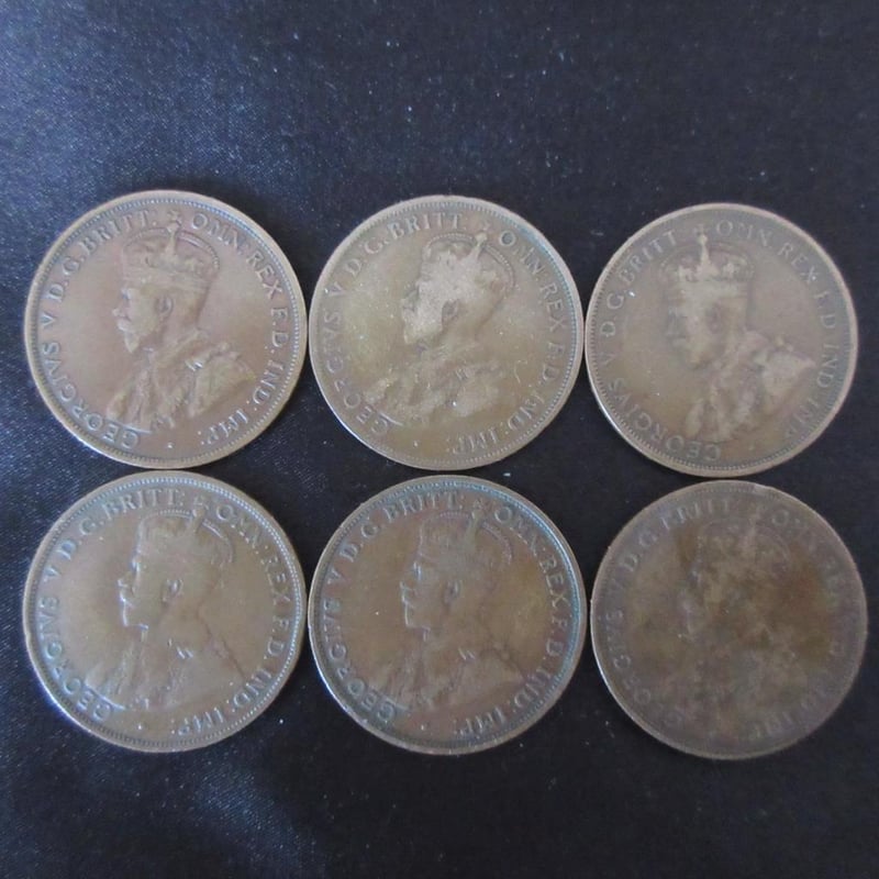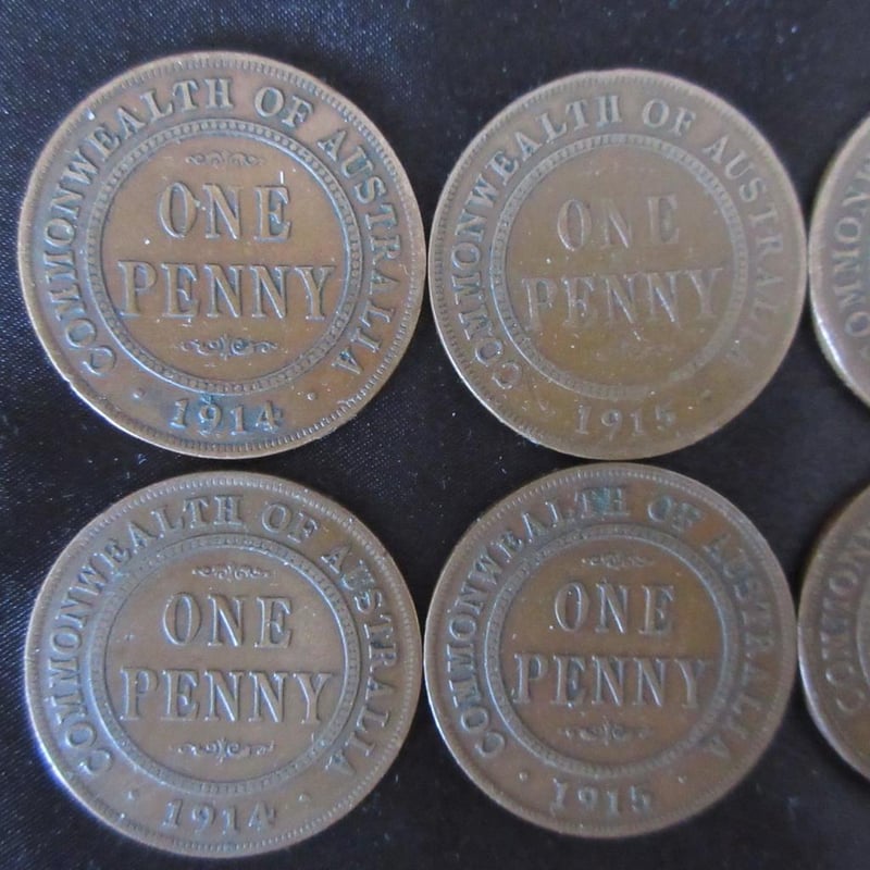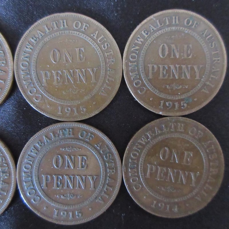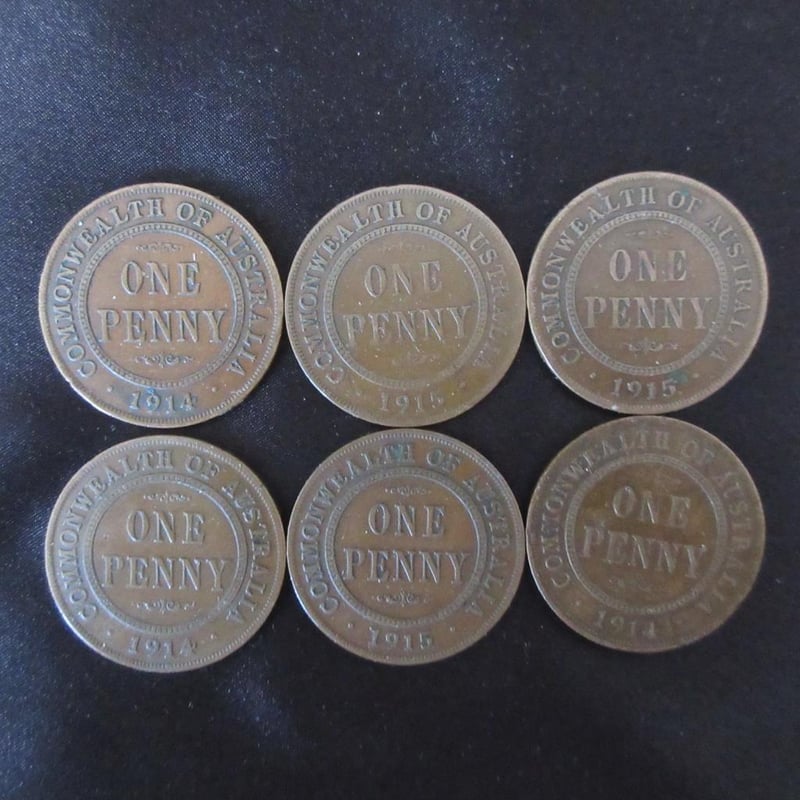 Estate (6) x Scarce Low-Mintage King George V Australian Pennies - (3) x C1914 (Only 720,000 Minted) + (3) x C1915 (Only 1.320M Minted) - All Coins With Multiple Pearls - Refer Photos (Sold as lot)