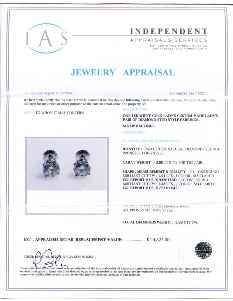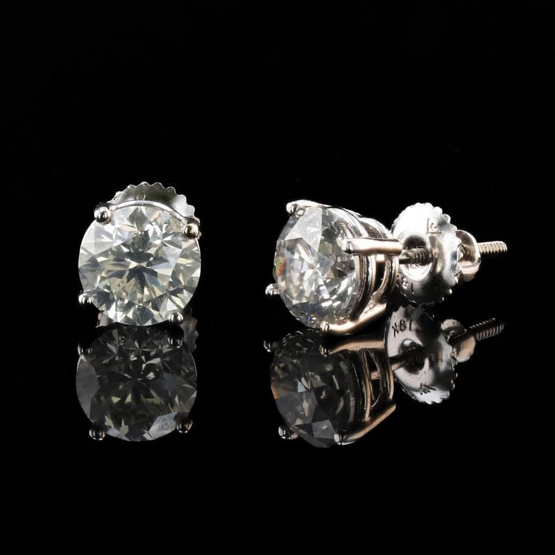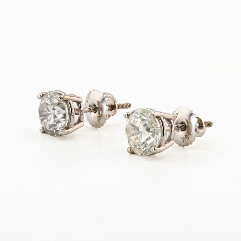 Indulge in the timeless allure of these exquisite 2.99-carat total weight diamond stud earrings, elegantly set in lustrous 18K white gold. Each earring features a dazzling array of meticulously selected diamonds, showcasing a brilliant cut that captures and reflects light with unparalleled radiance. The classic stud design offers a versatile charm, making them the perfect accessory for both everyday wear and special occasions.