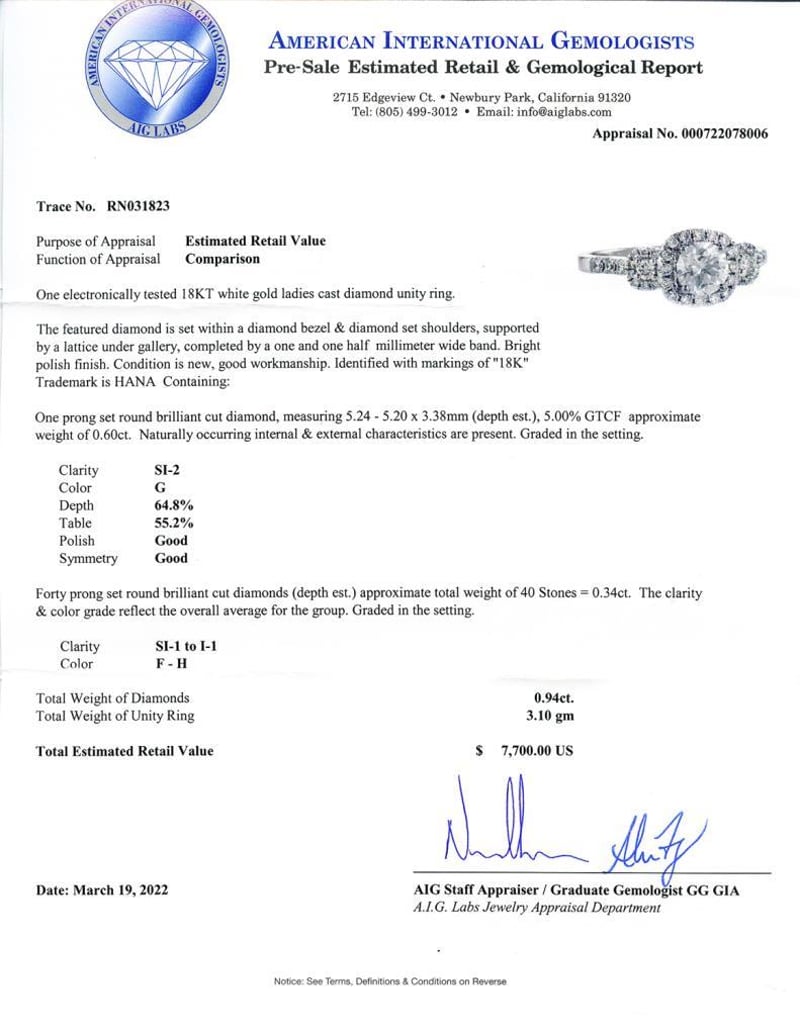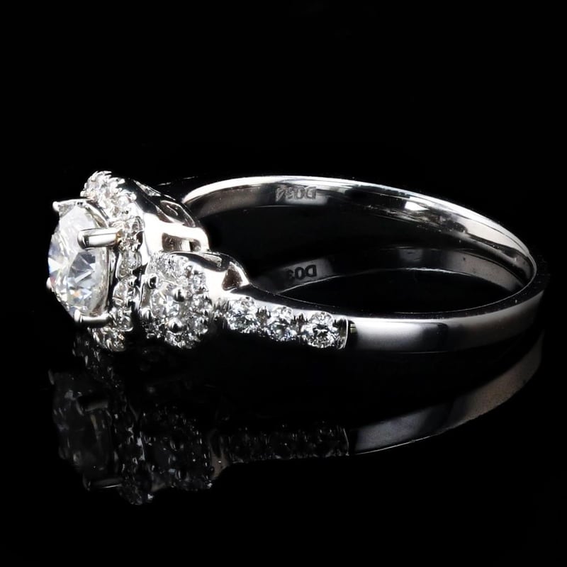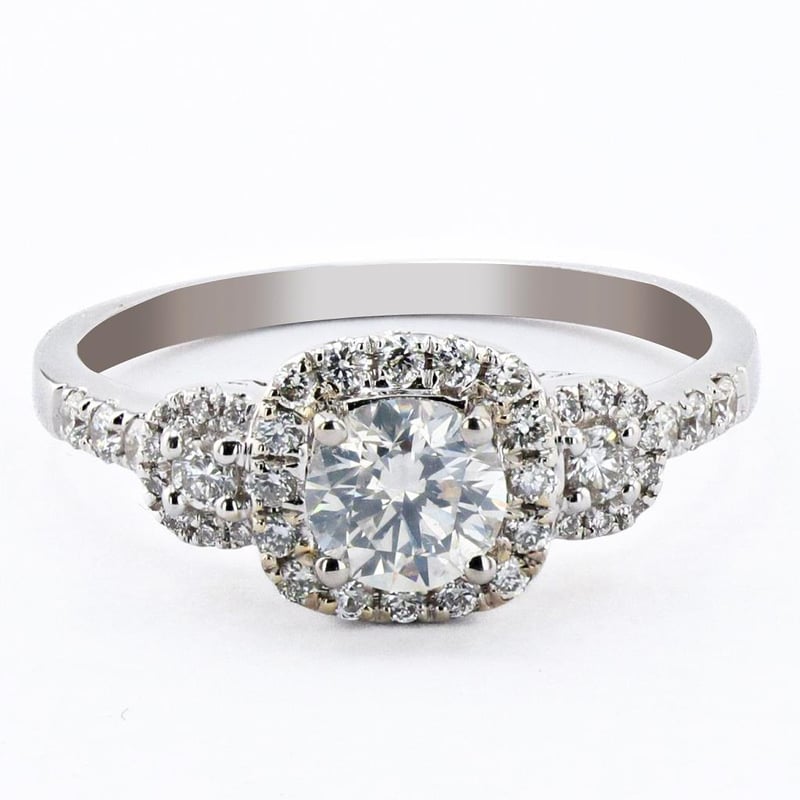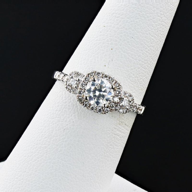 At its heart, a dazzling SI2 clarity center diamond takes center stage, boasting a remarkable sparkle that catches the light with every movement. This captivating stone is surrounded by an additional 0.34ctw of shimmering diamonds, creating a harmonious symphony of brilliance that elevates this ring to a realm of unparalleled elegance.