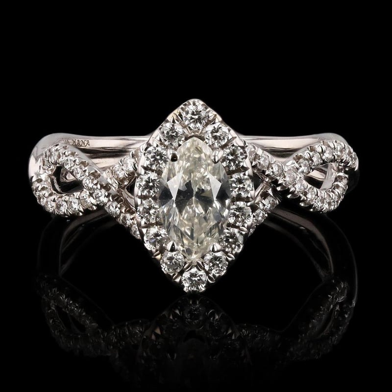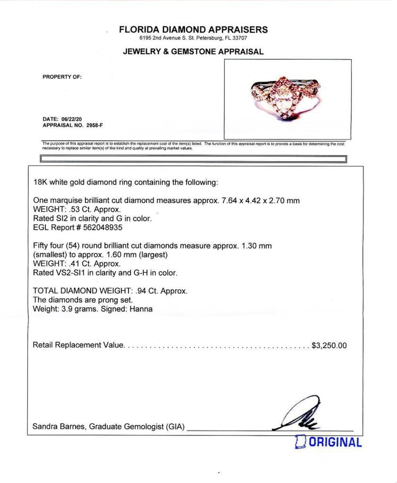 Elevate your elegance with this stunning 18K white gold ring, featuring a captivating 0.53ct center diamond that radiates sophistication and charm. With an impressive SI2 clarity, this diamond boasts a brilliant sparkle that captures the light from every angle, ensuring that all eyes are drawn to your hand.