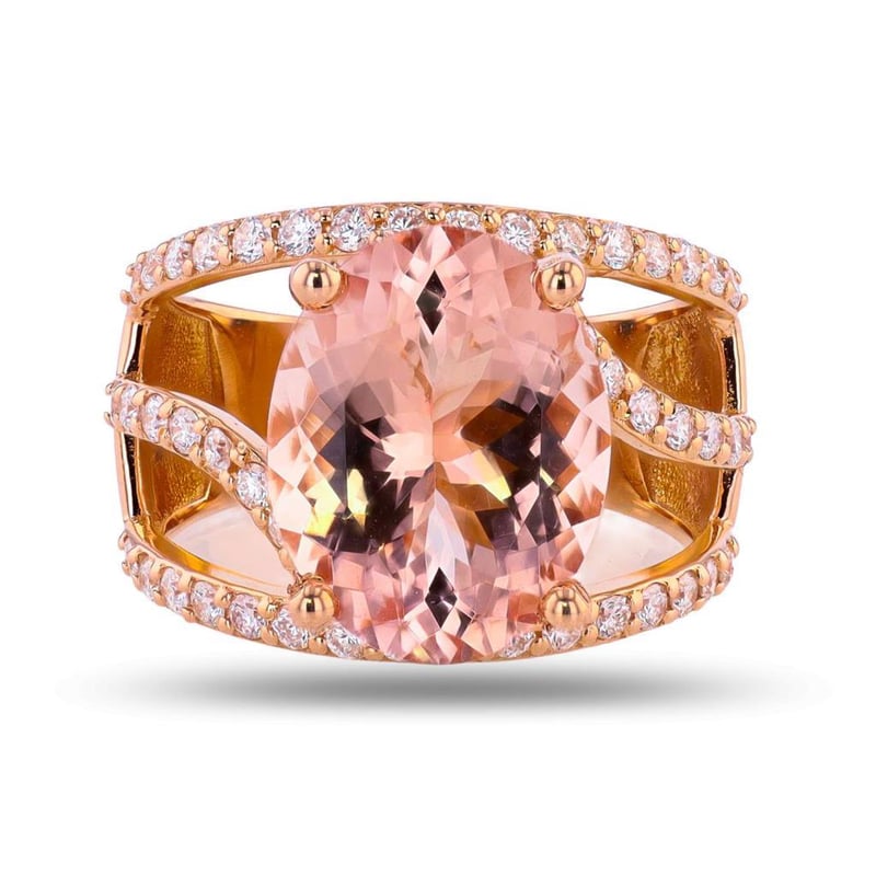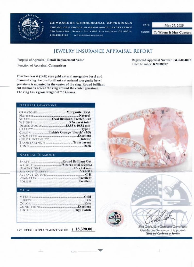 Ethereal Elegance: 5.36ct Morganite and 0.78ctw Diamond 14K Rose Gold Ring