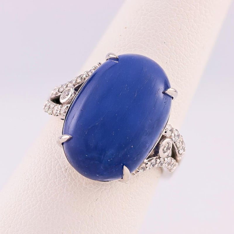 Exquisite 25.09ct Blue Burmese Sapphire and 0.40ctw Diamond Platinum Ring