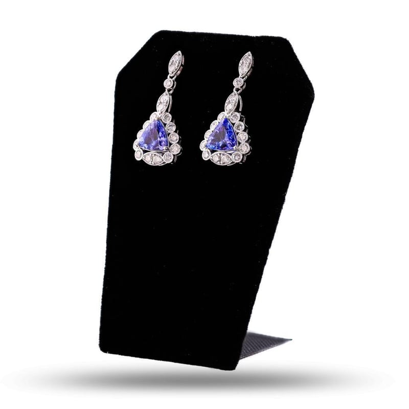 Indulge in the allure of these breathtaking dangle earrings, where the enchanting blue-violet hues of 4.94 carats of premium tanzanite elegantly cascade, captivating the light with every movement. Set in luxurious platinum, the radiant gemstones are beautifully complemented by 2.06 carats of brilliant diamonds that sparkle like stars in the night sky, creating a perfect harmony of color and brilliance.