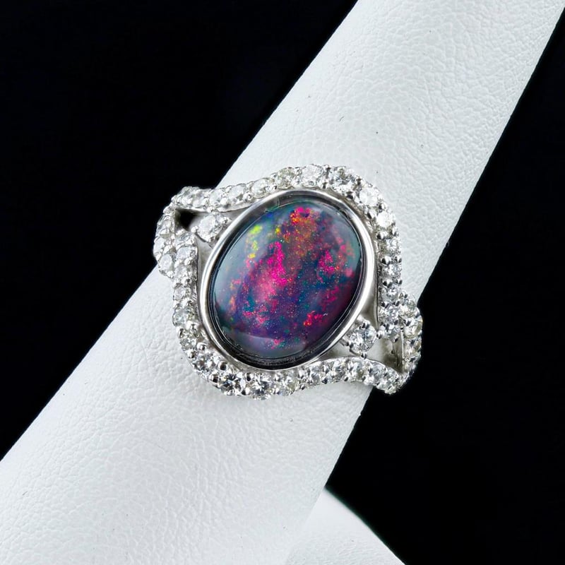 Whether worn as a statement piece for special occasions or as a cherished addition to an everyday ensemble, this opal and diamond ring is designed to inspire awe and admiration. Embrace the opportunity to own a piece that embodies both nature's artistry and human craftsmanship—a true heirloom destined to be passed down through generations.