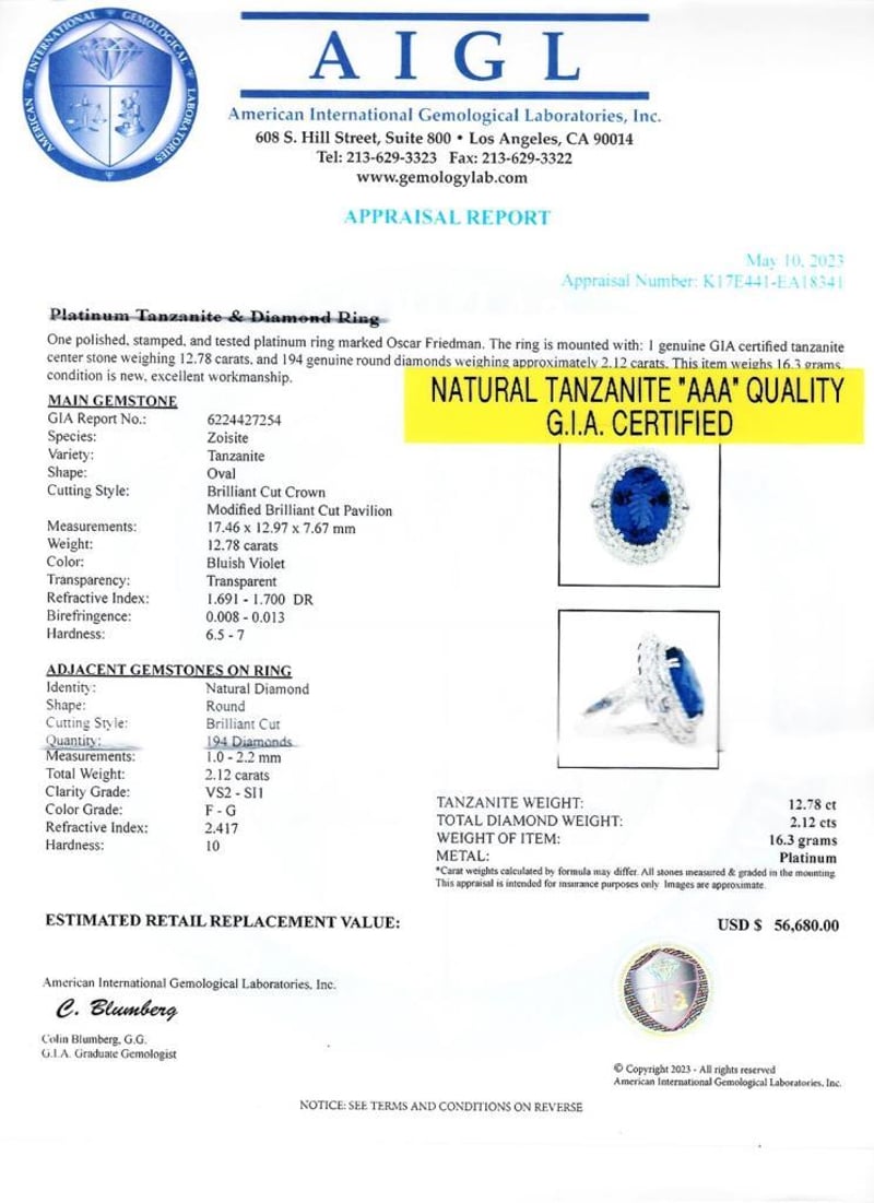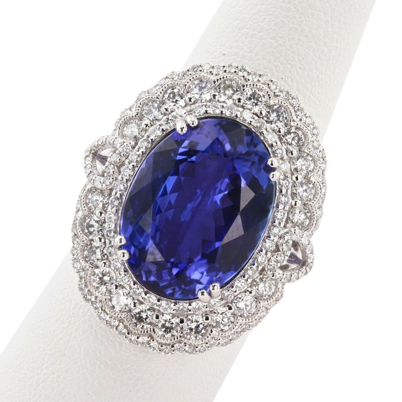 Exquisite 12.78ct Tanzanite and 2.12ctw Diamond Platinum Ring (GIA CERTIFIED)