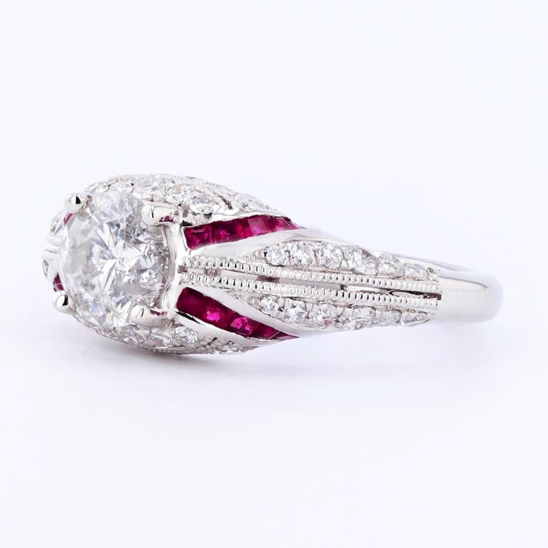 Exquisite 1.01ct Diamond and 0.47ctw Ruby Platinum Ring – A Dazzling Masterpiece