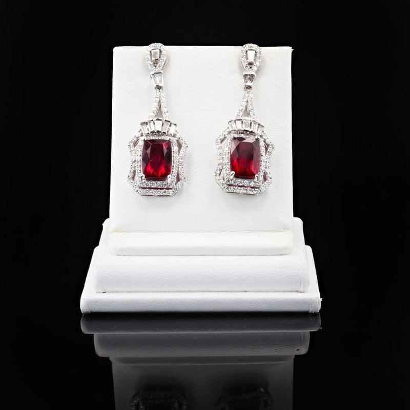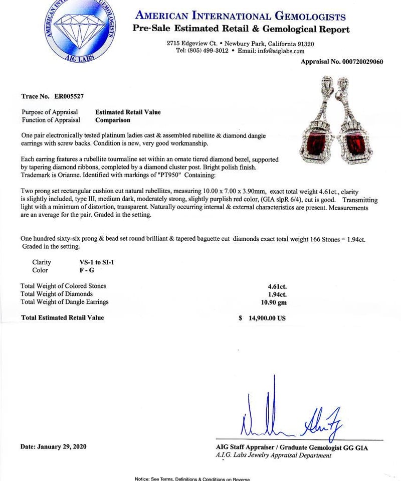 Indulge in the opulence of these exquisite earrings, where nature's artistry meets masterful craftsmanship. Crafted in luminous platinum, these stunning pieces showcase a captivating 4.61 carats of striking rubellite tourmaline, renowned for its vibrant hues that dance between deep raspberry and rich magenta. Each tourmaline is expertly cut to enhance its brilliance, reflecting light with an enchanting allure that is simply irresistible.