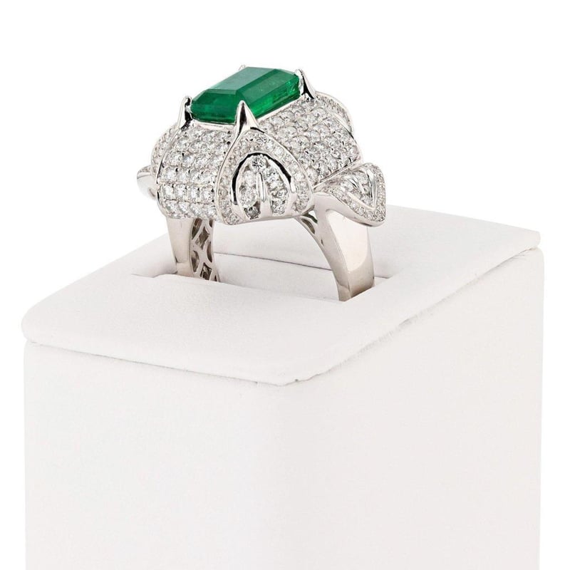 Exquisite 2.87ct Emerald and 2.12ctw Diamond Platinum Ring