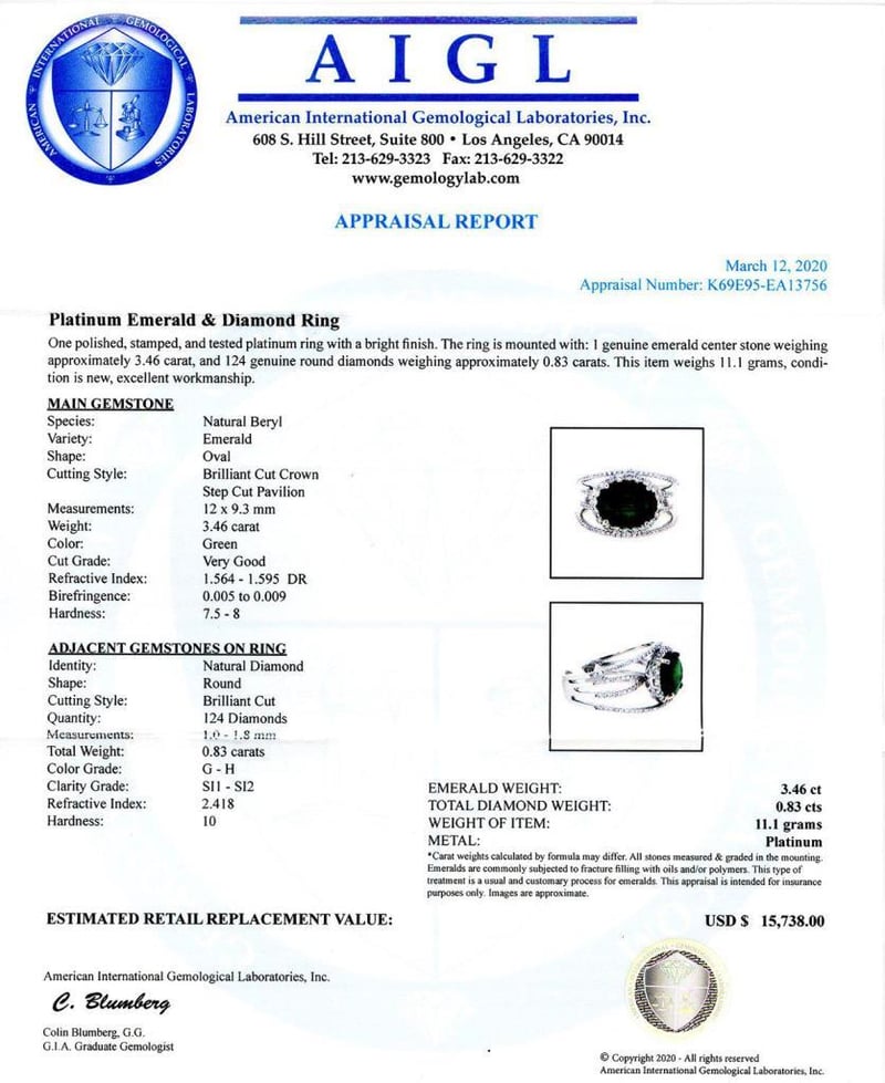Captivating Elegance: A 3.46ct Emerald and 0.83ctw Diamond Platinum Ring