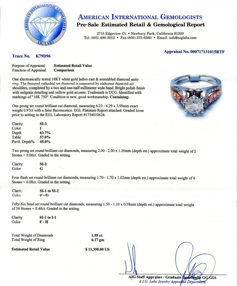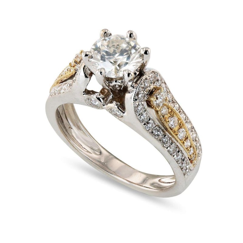 Exquisite 0.97ct SI3 Clarity Diamond Ring in 18K White and Yellow Gold