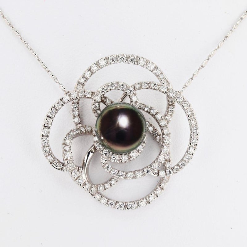 Surrounding the pearl, a dazzling array of 1.33 carats of brilliant-cut diamonds adds a touch of opulence, reflecting light with every movement. The interplay of the diamonds against the rich tones of the Tahitian pearl creates a striking contrast, ensuring that this necklace is not just an accessory, but a statement of elegance.