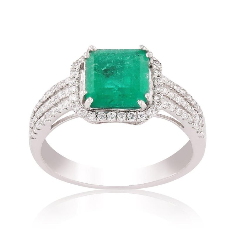 Crafted with exquisite attention to detail, this ring is not just a piece of jewelry; it is a statement of sophistication and refined taste. Perfect for any occasion, whether it be an engagement, anniversary, or a special gift for someone you adore, this emerald and diamond ring embodies both romance and luxury. Don’t miss the opportunity to own this remarkable treasure, where beauty and craftsmanship converge in perfect harmony.