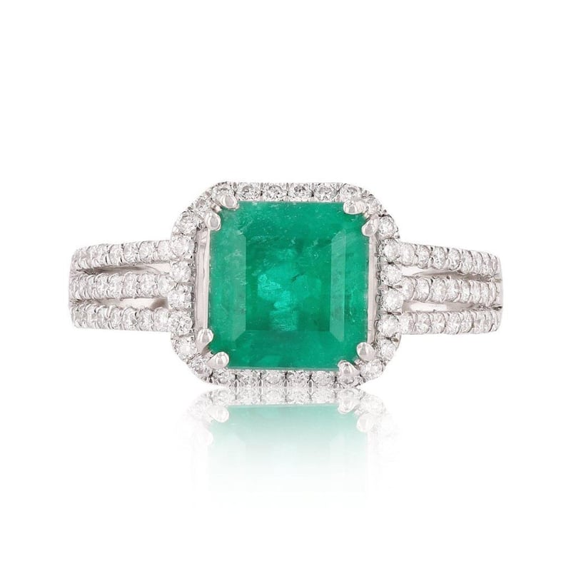 Exquisite 1.59ct Emerald and 0.39ctw Diamond Platinum Ring