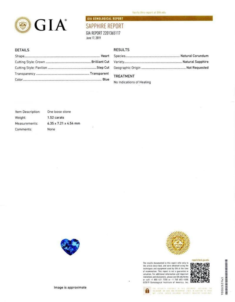 Indulge in the timeless elegance of this stunning 1.52ct unheated blue sapphire and diamond ring, a true masterpiece designed for the discerning connoisseur. At the heart of this exquisite piece lies a mesmerizing blue sapphire, boasting a rich, velvety hue that captivates the eye and evokes the serene depth of a tranquil ocean. Certified by GIA, this exceptional gemstone has been carefully sourced for its rarity and beauty, ensuring that it is unheated and in its natural state, preserving its intrinsic allure.