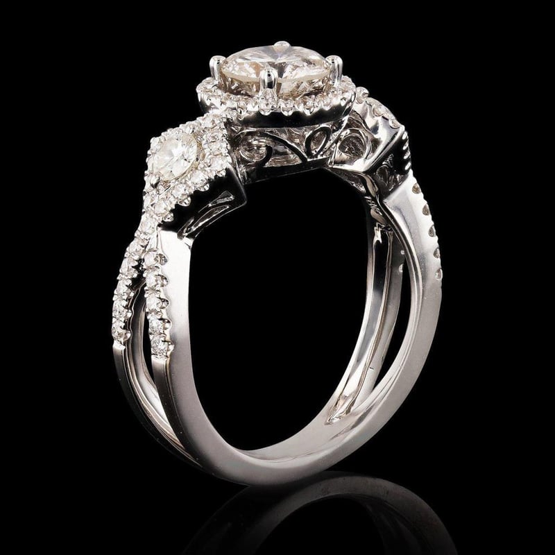 Ethereal Elegance: 0.90ct Center Diamond 18K White Gold Ring (1.58ctw Diamonds)