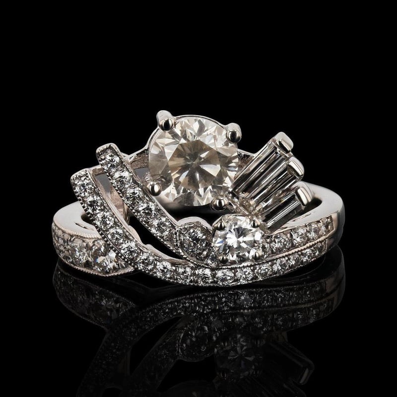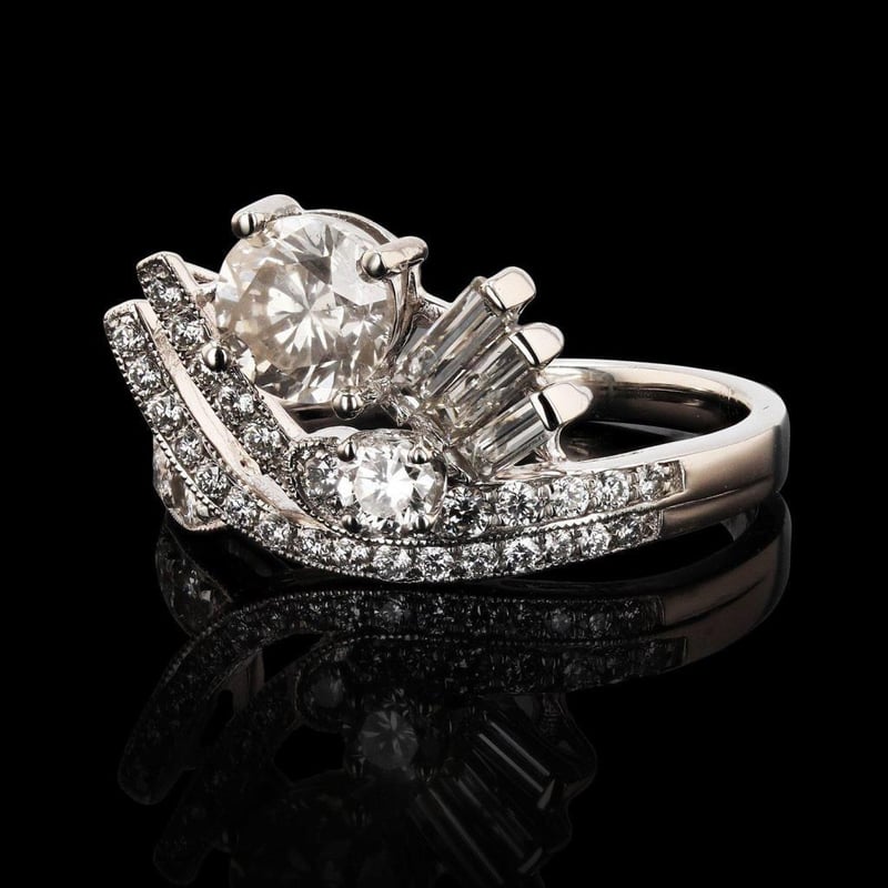Crafted in lustrous platinum, known for its durability and hypoallergenic properties, this ring not only showcases the stones’ stunning luminosity but also ensures a lifetime of wear. The meticulously designed band features intricate detailing, allowing the diamonds to shimmer from every angle, creating a mesmerizing display of light.