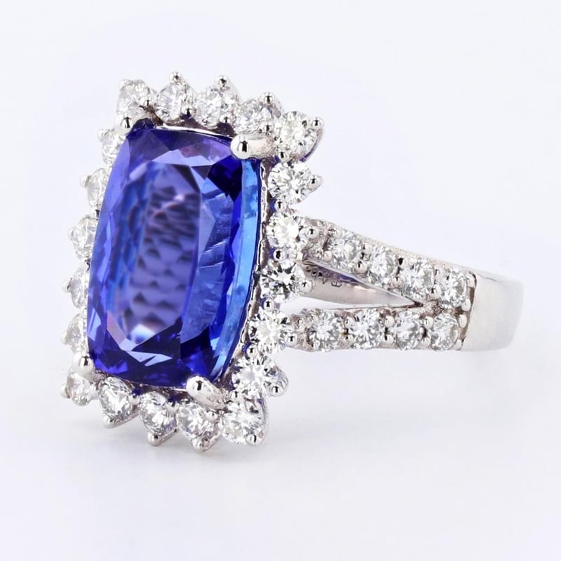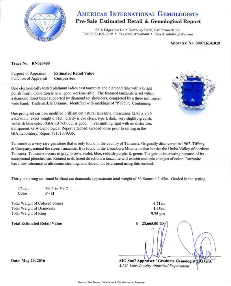Exquisite 6.71ct Tanzanite and 1.45ctw Diamond Platinum Ring