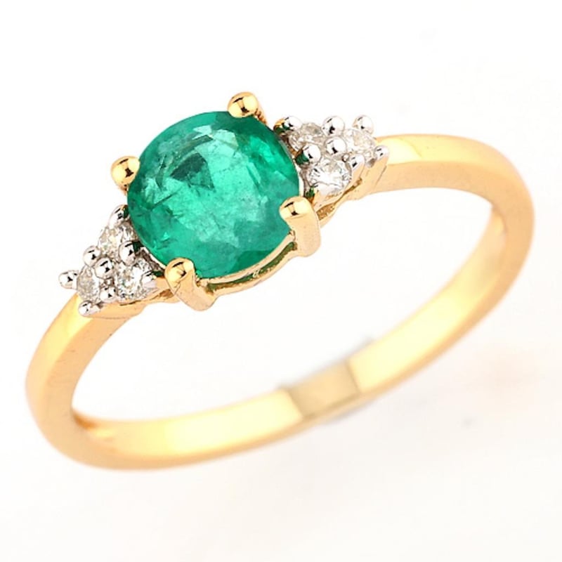 Exquisite 9K Yellow Gold Ring Featuring Zambian Emerald and Sparkling White Diamonds