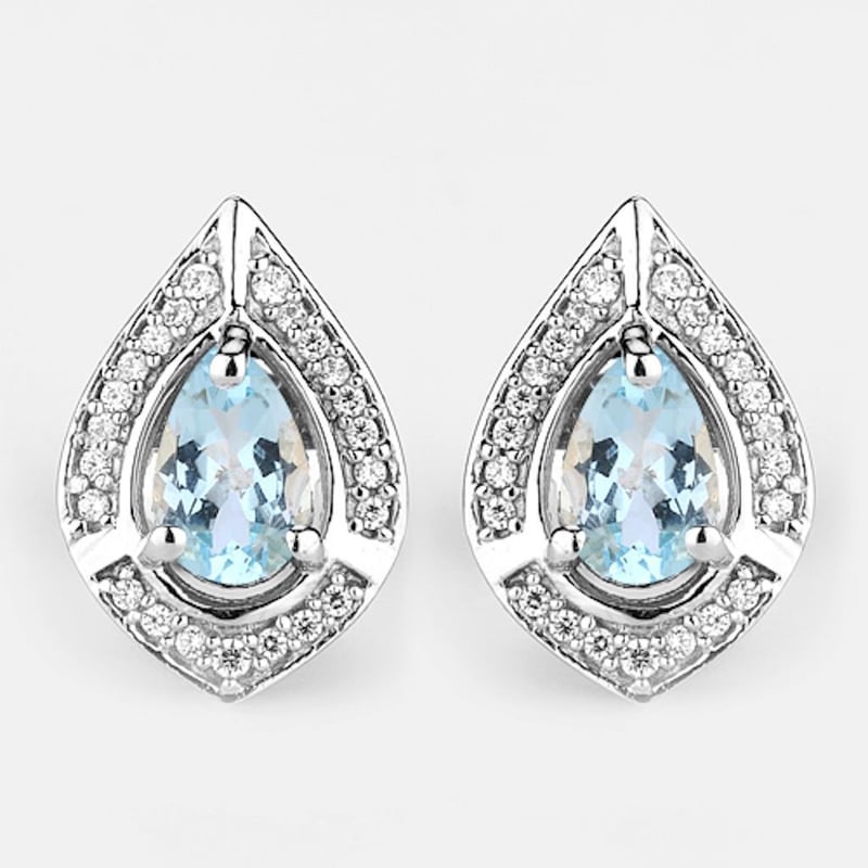 Step into a world of sophistication with these exquisite 9K white gold earrings, crafted to perfection for the discerning jewelry connoisseur. Each piece features a stunning pair of 6x4mm pear-shaped aquamarines, their serene blue hues reminiscent of tranquil ocean waves, gracefully suspended to capture the light with every movement.