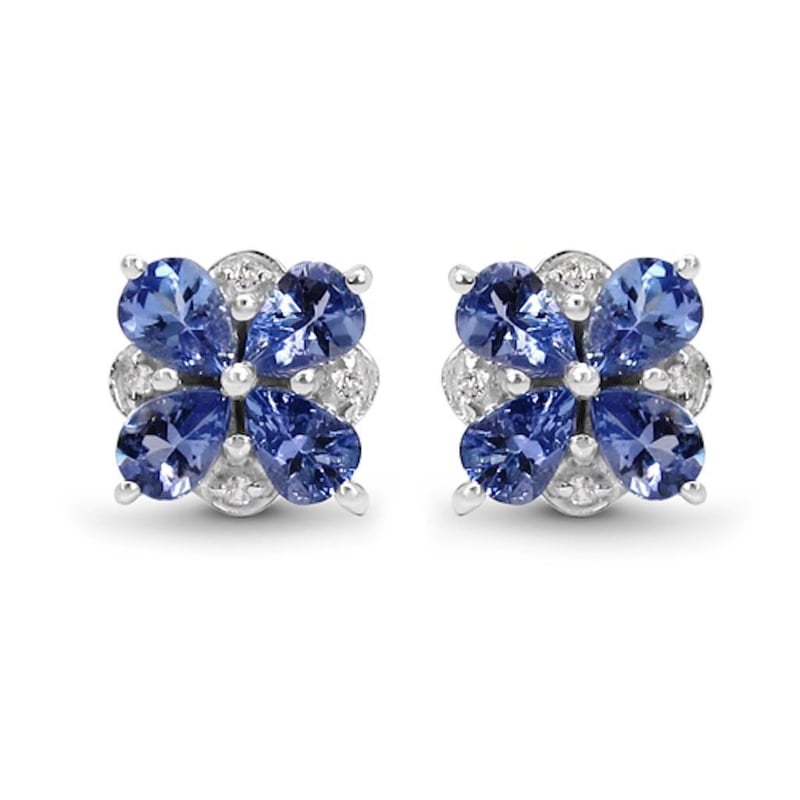 Exquisite 9K White Gold Tanzanite and Diamond EarringsIndulge in the allure of elegance with these stunning 9K white gold earrings, showcasing a harmonious blend of vibrant tanzanite and sparkling white diamonds. Each earring features four exquisite pear-shaped tanzanite stones, meticulously cut to a perfect 4x3mm, radiating a captivating blue-violet hue that evokes the depths of twilight skies. Surrounding these mesmerizing tanzanite gems are eight dazzling round white diamonds, each measuring 1.00mm, crafted to perfection with SI-2 clarity and HI color, ensuring they catch the light with every movement. The push post design ensures a secure fit, allowing you to wear these luxurious earrings from day to night, making them the perfect accessory for any occasion.Elevate your jewelry collection with this enchanting pair that embodies sophistication and timeless beauty, destined to become a cherished favorite. Whether for a special event or an everyday statement, these earrings are a testament to refined taste and exquisite craftsmanship. Don’t miss the chance to own this stunning piece of wearable art.