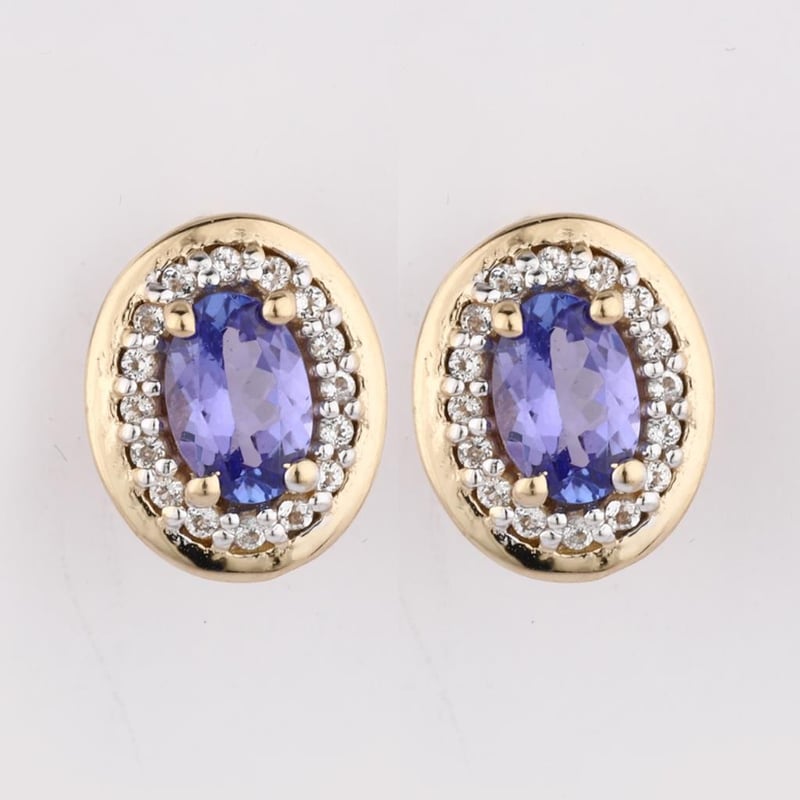 Elegant 9K Yellow Gold Tanzanite and Diamond EarringsIndulge in the exquisite allure of these stunning 9K Yellow Gold Earrings, where vibrant tanzanite meets sparkling white diamonds in a harmonious dance of color and light. Each earring features a captivating oval tanzanite gemstone, measuring 6x4mm, that radiates a mesmerizing violet-blue hue, reminiscent of twilight skies. Complemented by a halo of 32 dazzling round white diamonds (1.00mm, SI-2/HI), these earrings embody a luxurious elegance that is perfect for any occasion.Designed with a secure push post fastening, they ensure comfort and ease while making a bold statement. The earrings are further enhanced by a brilliant white pen rhodium finish, which not only accentuates the rich yellow gold but also adds a timeless shine that will captivate onlookers. Whether worn for a special event or to elevate your everyday ensemble, these earrings are a testament to sophistication and grace, making them an essential addition to your jewelry collection. Embrace the beauty of fine craftsmanship and let these earrings become your new favorite accessory.