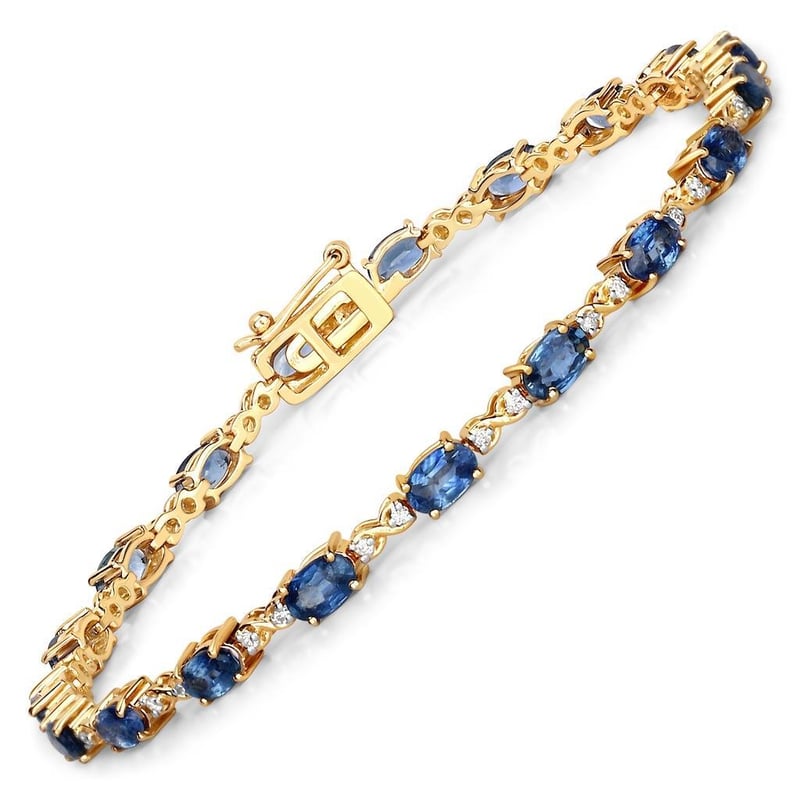 Exquisite 9K Yellow Gold Bracelet Adorned with Blue Sapphires and White Diamonds