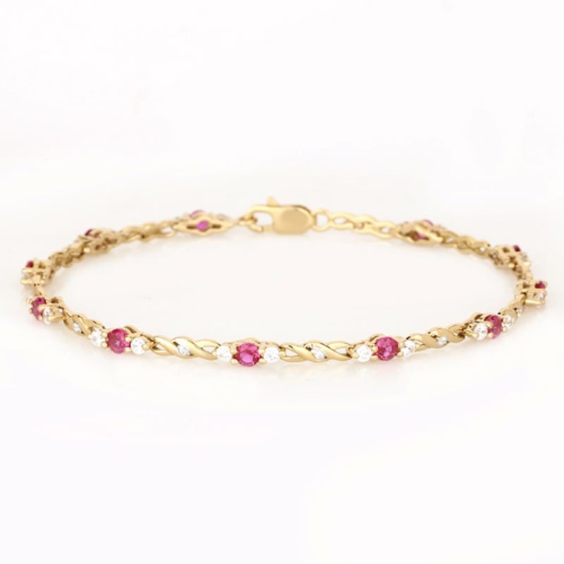 Exquisite 9K Yellow Gold Bracelet Adorned with Ruby and Diamond Elegance