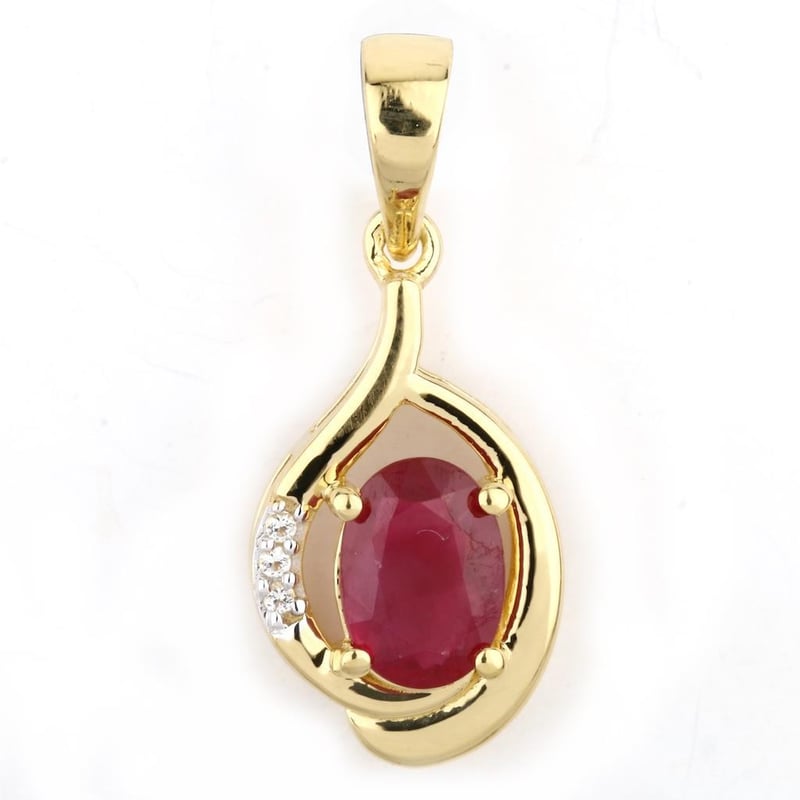 Indulge in the captivating allure of this stunning pendant, meticulously crafted in radiant 9K yellow gold. Showcasing an elegant 7x5mm oval ruby, this piece radiates a deep crimson hue that symbolizes love and passion. The ruby is expertly complemented by three brilliant round white diamonds, each measuring 1.00mm, featuring a sparkling F/C quality and SI-2 clarity.