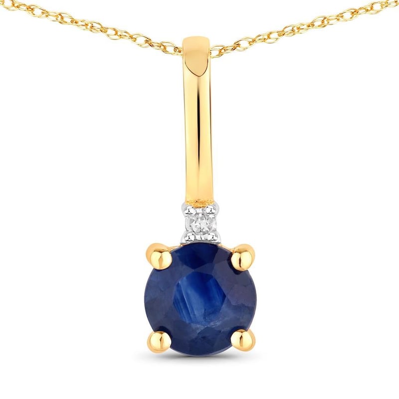 Exquisite 9K Yellow Gold Pendant Featuring a Stunning Blue Sapphire and Dazzling White Diamonds