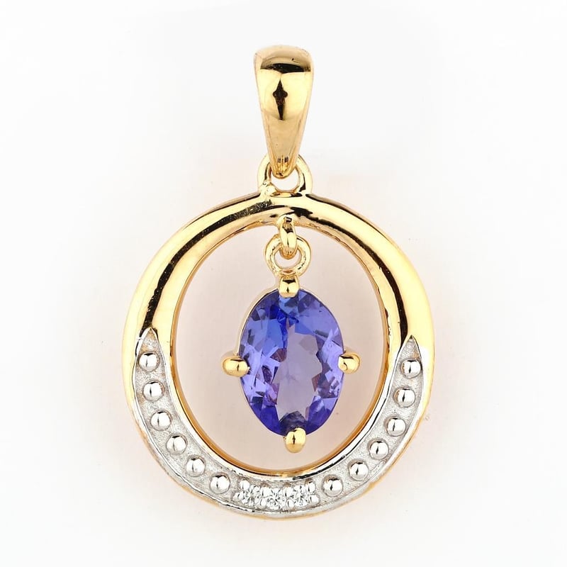 Radiant Elegance: 9K Yellow Gold Tanzanite Oval Pendant with Diamond Accents