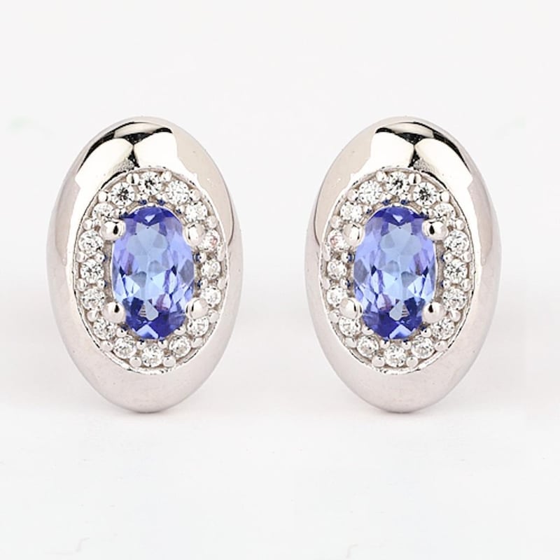 Step into a realm of sophistication with these breathtaking 9K White Gold Earrings, designed to capture the essence of luxury and elegance. Each earring features a stunning oval tanzanite, measuring 5x3mm, radiating a mesmerizing violet-blue hue that evokes the enchanting beauty of twilight skies.