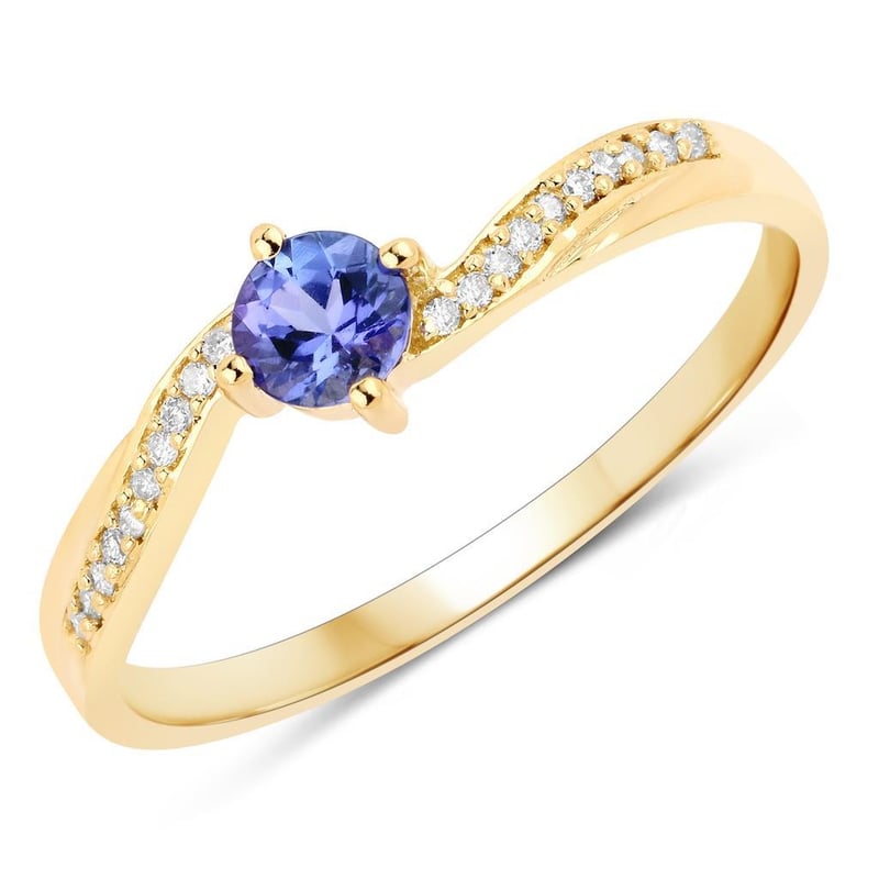 Exquisite 9K Yellow Gold Tanzanite and Diamond RingIndulge in the allure of elegance with this stunning 9K yellow gold ring, a masterpiece that beautifully marries vibrant color with timeless sophistication. At its heart lies a mesmerizing 4.00mm round tanzanite, renowned for its rich, violet-blue hues that captivate the eye and evoke the serene beauty of twilight skies. This striking gemstone is elegantly complemented by a halo of 20 sparkling round white diamonds, each measuring 0.80mm, with a clarity grade of SI-2 and a color grade of HI. The diamonds dance around the tanzanite, reflecting light with every movement and creating a dazzling display of brilliance.Crafted from high-quality 9K yellow gold, this ring not only embodies luxury but also promises durability and comfort for everyday wear. Its classic design ensures it will be a cherished piece in your collection, perfect for both special occasions and casual outings. Whether you are treating yourself or searching for the perfect gift, this ring is a stunning choice that speaks to the heart of elegance and style. Embrace the enchantment of tanzanite and the radiant sparkle of diamonds—own this exquisite piece and let it become a part of your story.